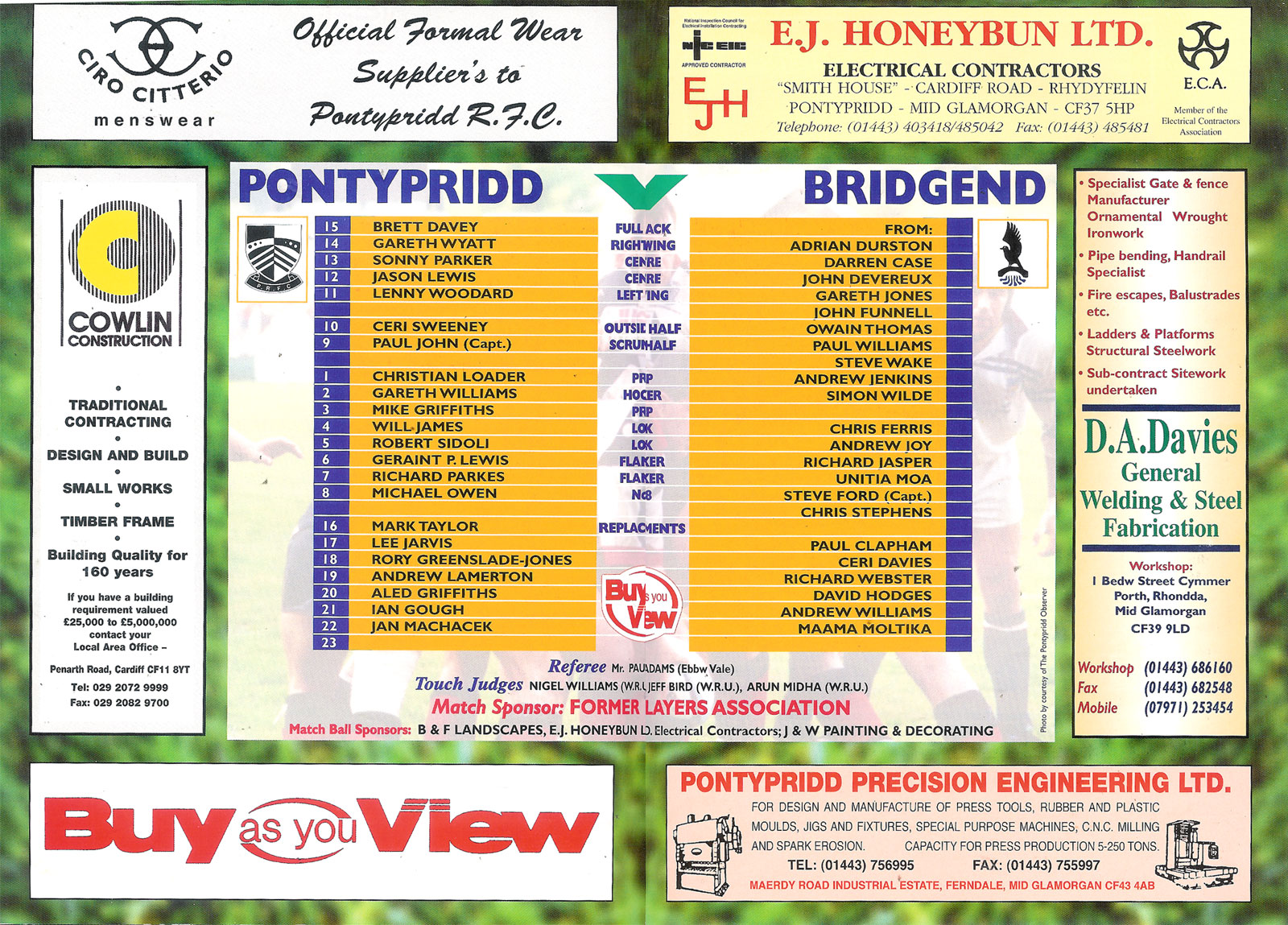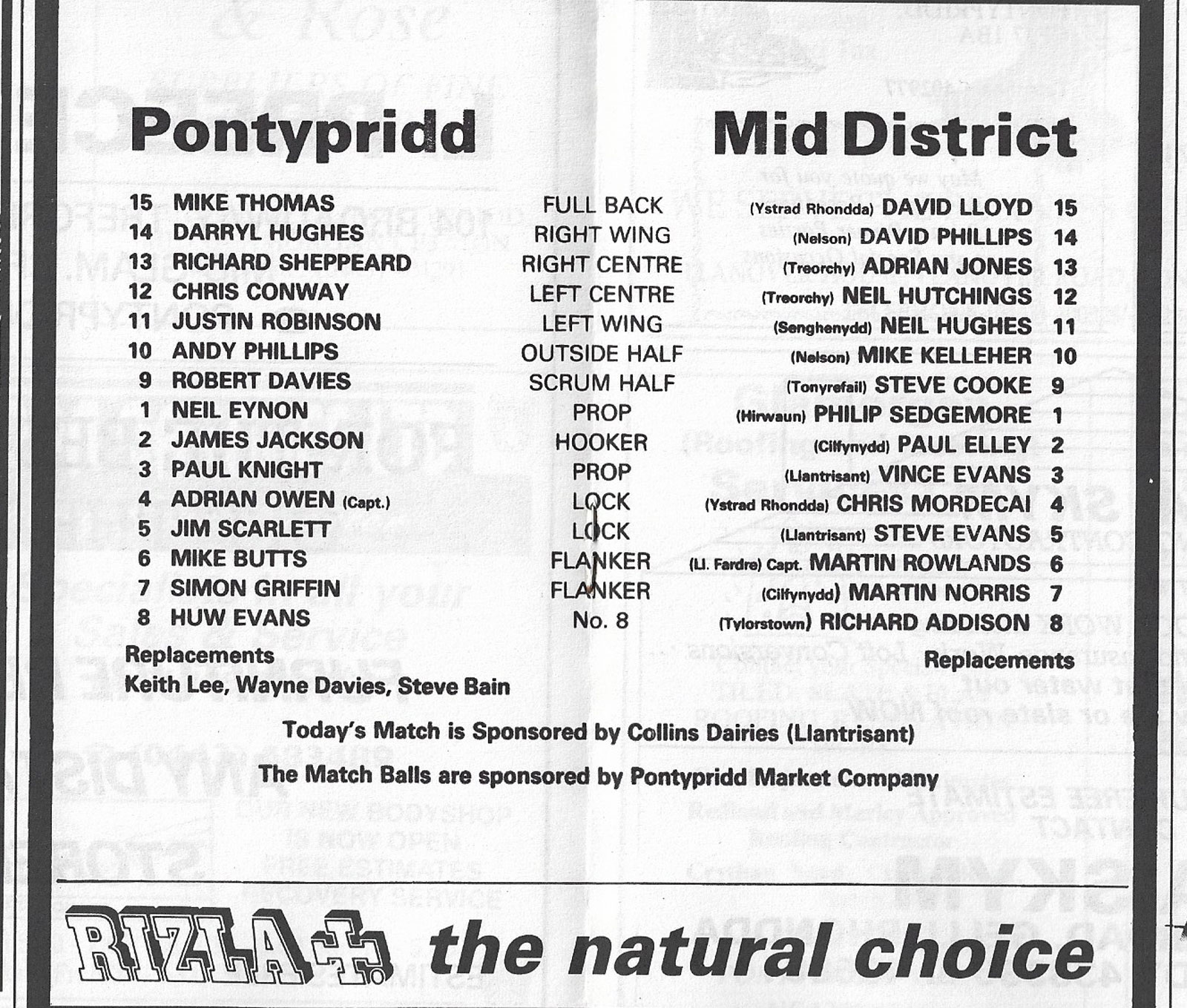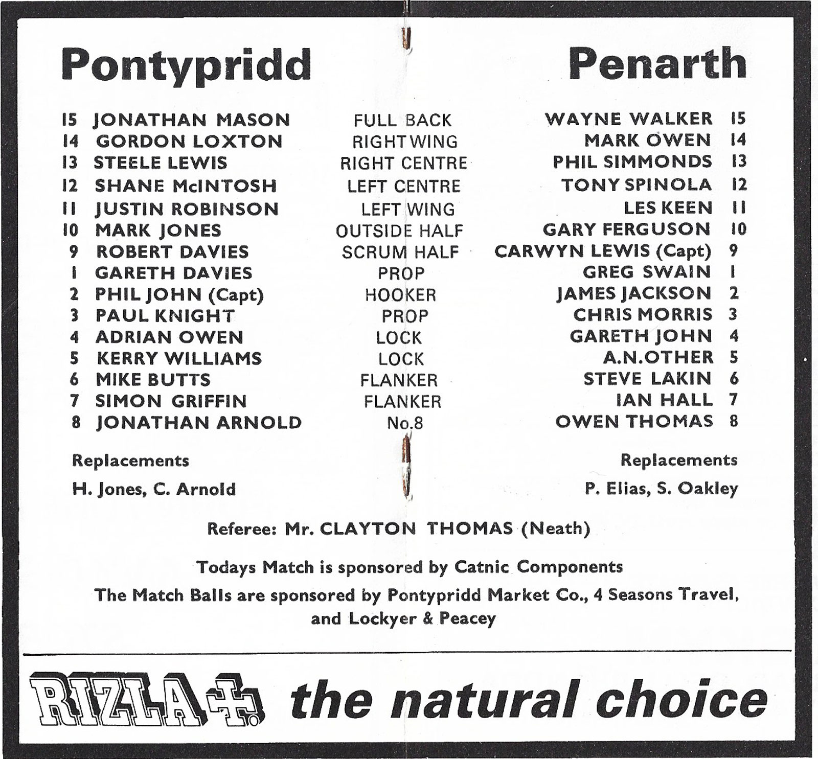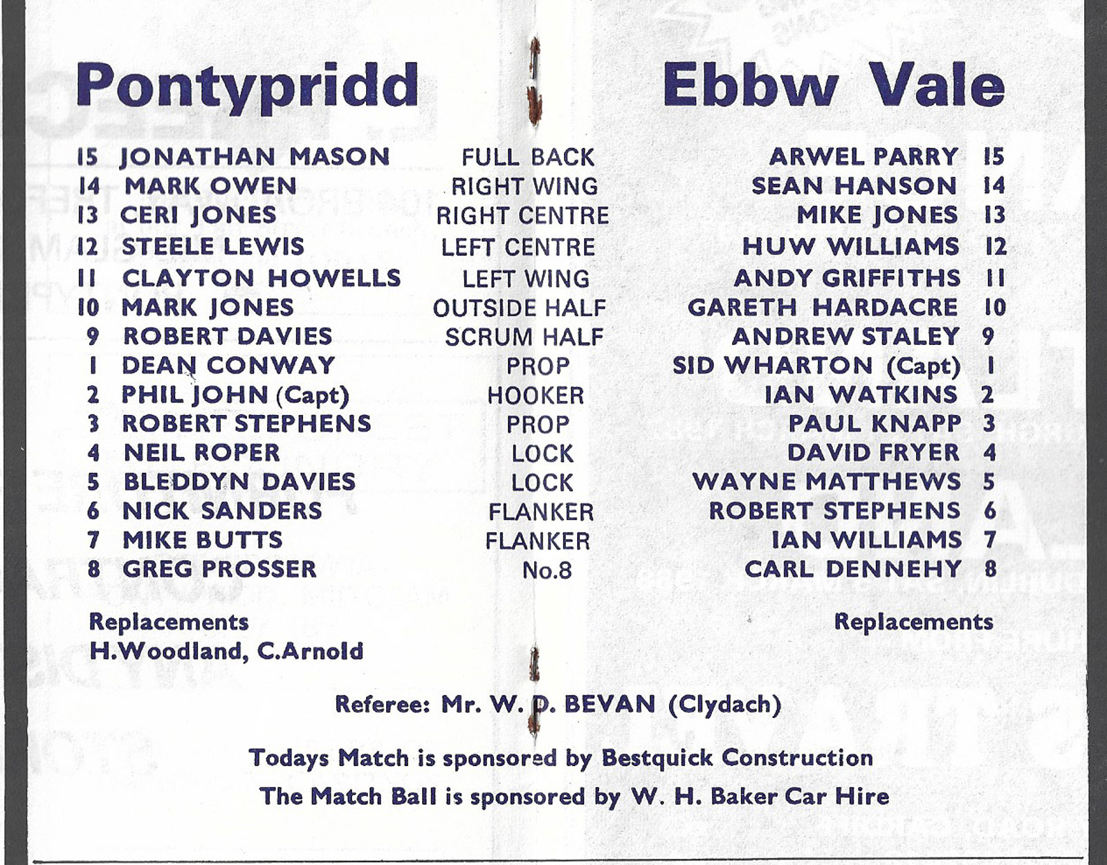 Pontypridd v Aberavon | 17 Apr 1961 | Pontypridd | good