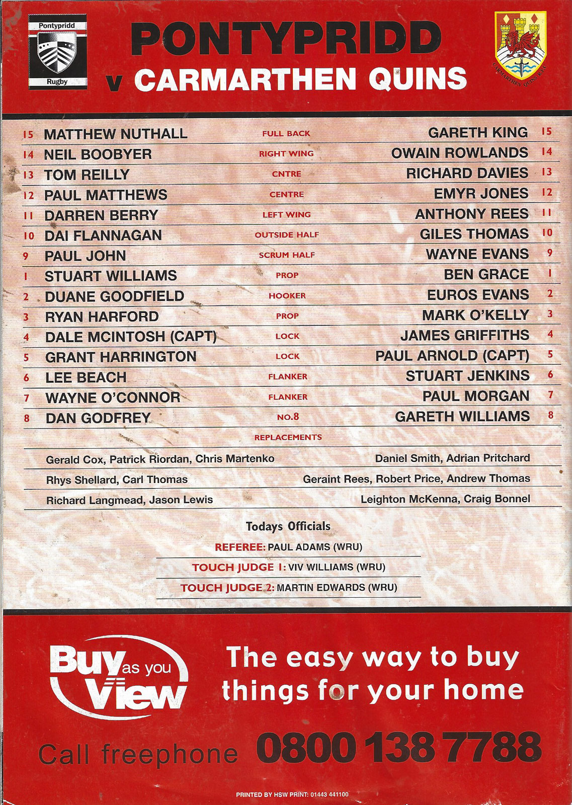 Pontypridd v Carmarthen Quins | 11 Sep 2010 | Pontypridd | very good Ref: RC575-prcb-ppr20100911carma - £2.00 |