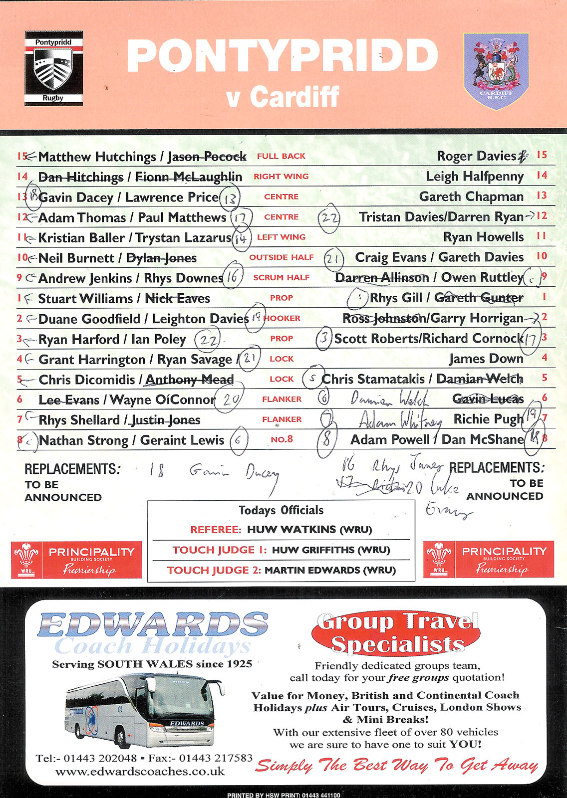 Pontypridd v Cardiff | 29 Dec 2007 | Pontypridd | very good Ref: RC568-B-prcb-ppr20071229cdf-ml - £3.00 |