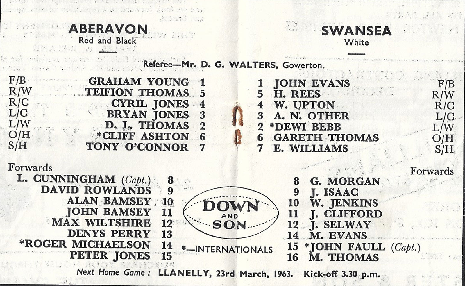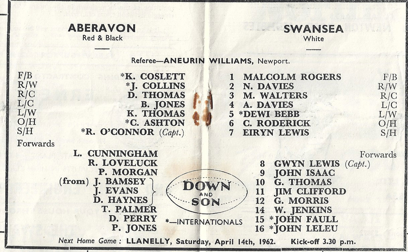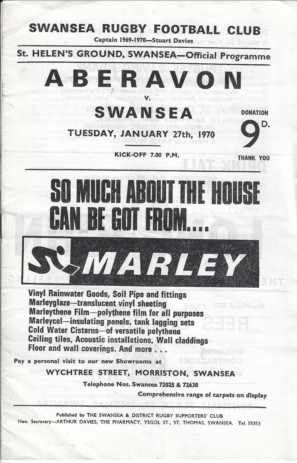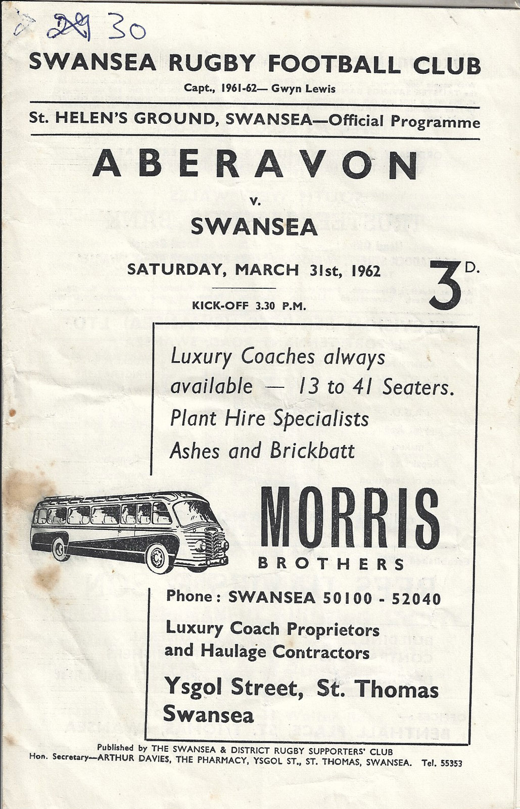 Swansea v Aberavon | 7 Mar 1959 | St Helens, Swansea | good - folding creases Ref: RC518-E-prcb-swa19590307aav - £8.00 |