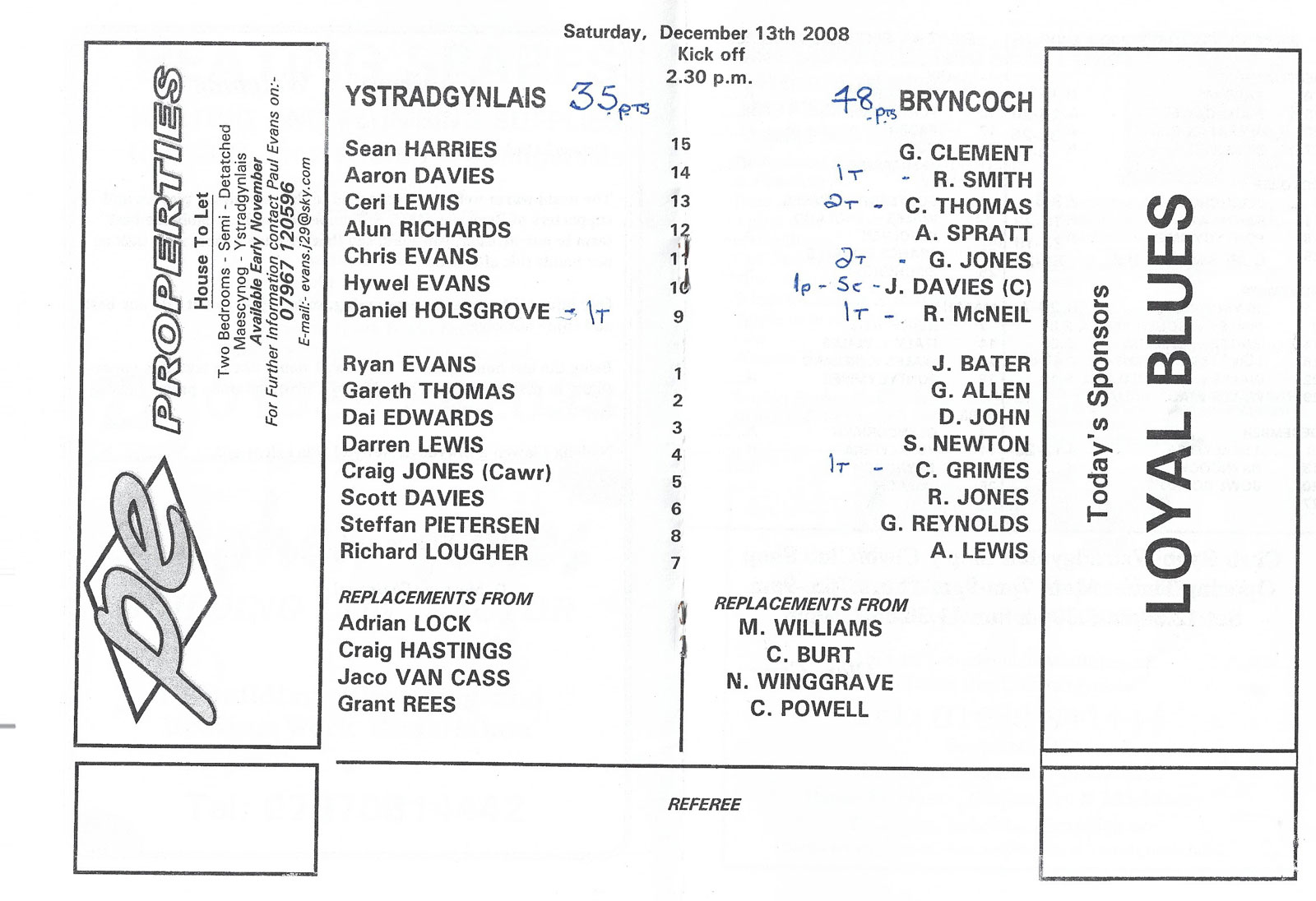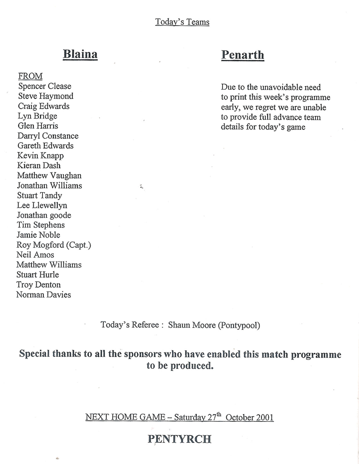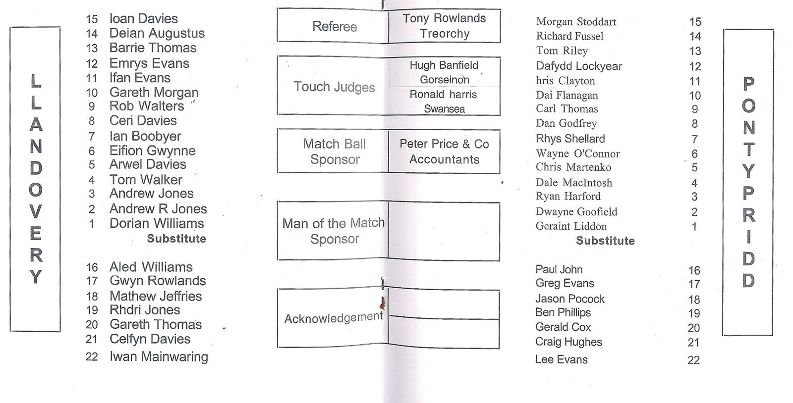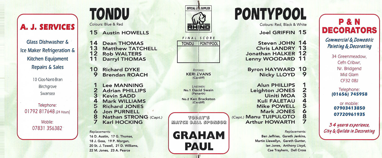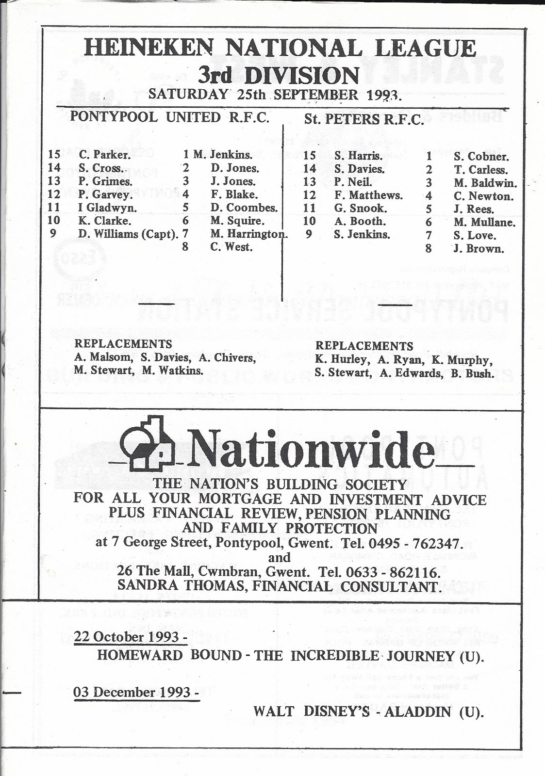 | PONTYPOOL PROGRAMMES |