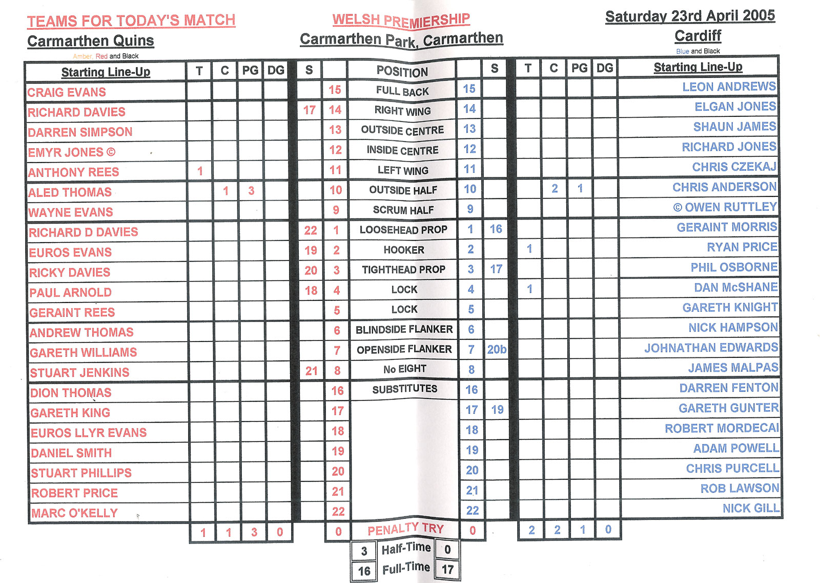| CARDIFF & CARDIFF BLUES PROGRAMMES |