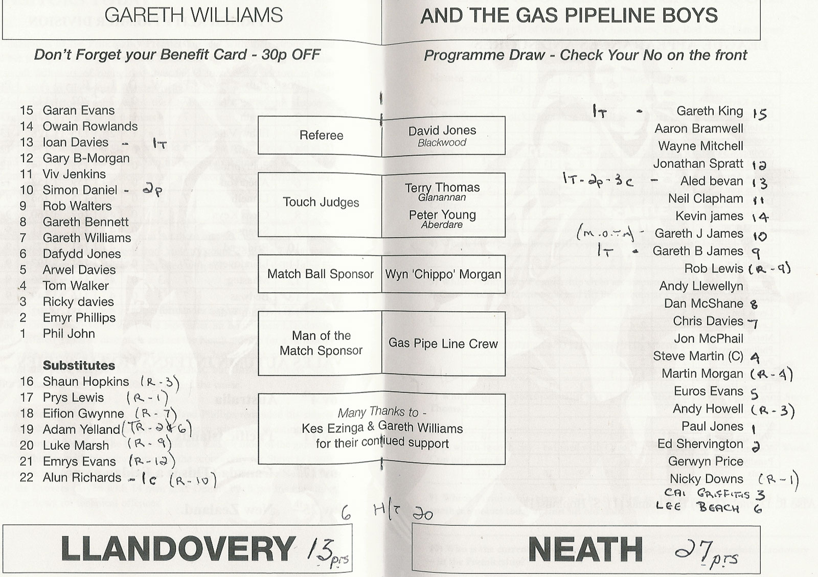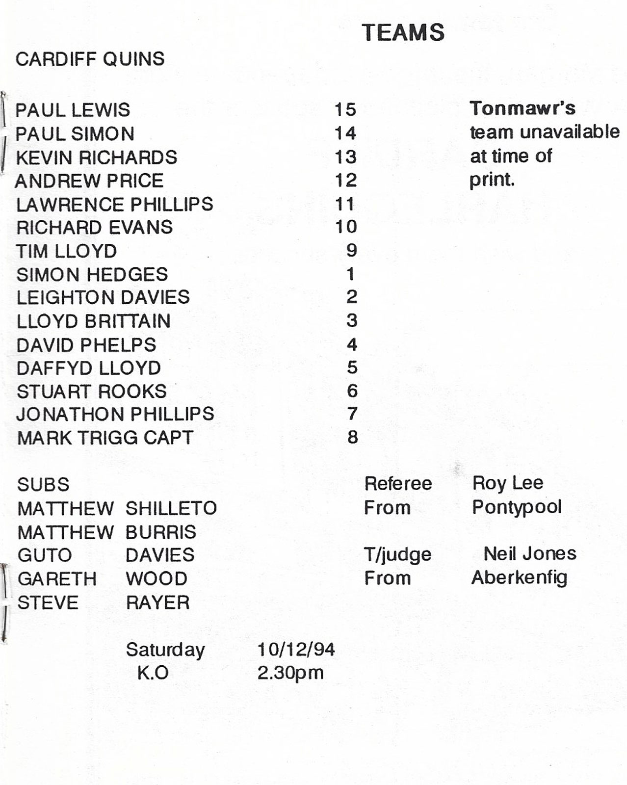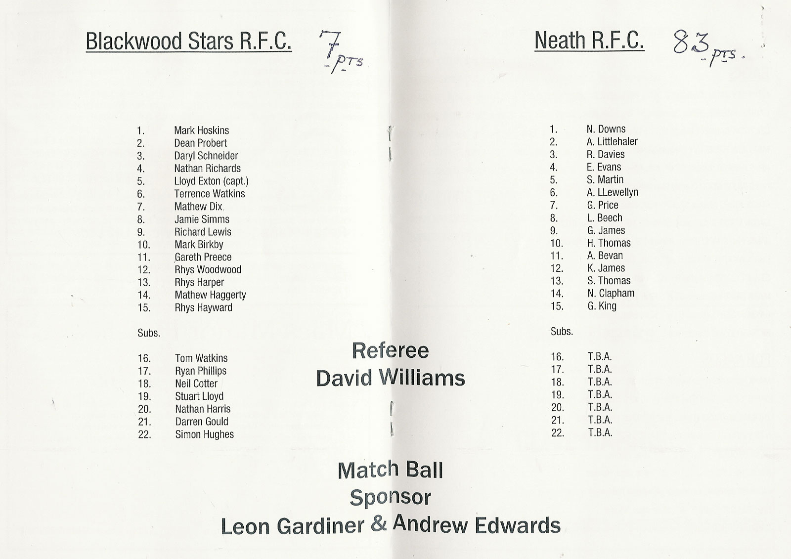 21 Oct 2006 | Memorial Field, Tonna | very good Ref: RC522-F-prcbwa-tna20061021nbr - £3.00 |