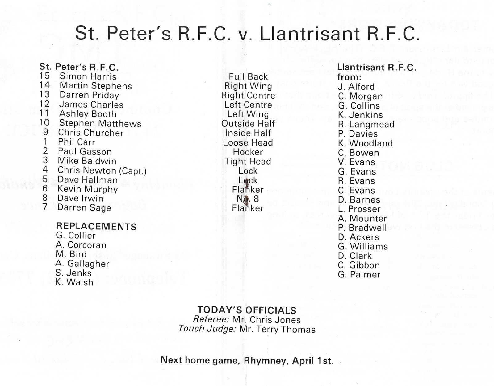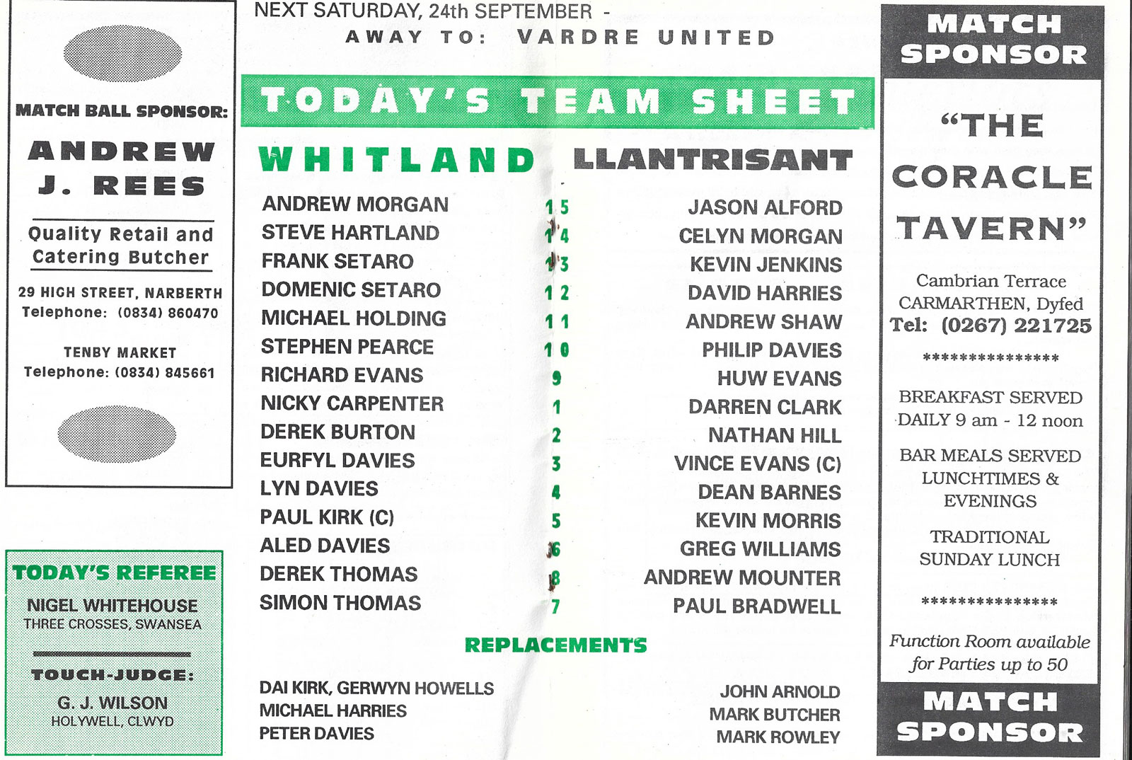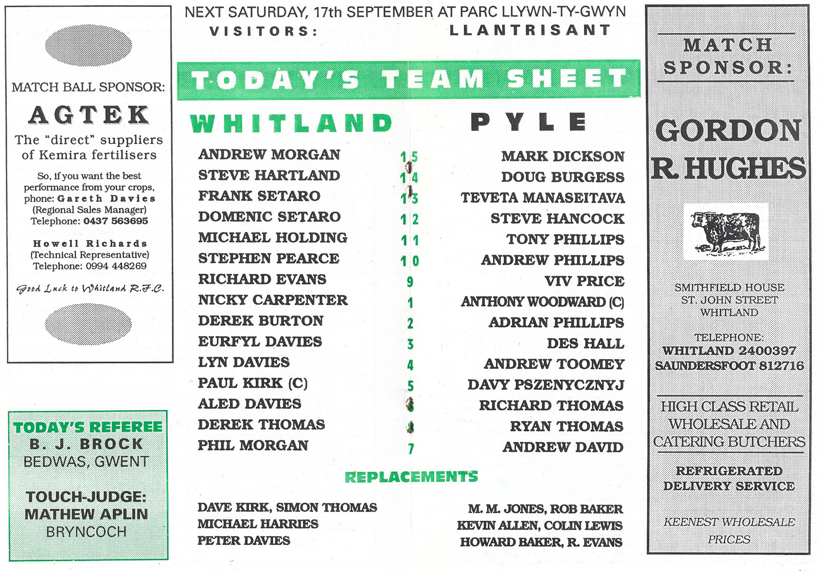 21 Oct 2006 | Memorial Field, Tonna | very good Ref: RC522-F-prcbwa-tna20061021nbr - £3.00 |