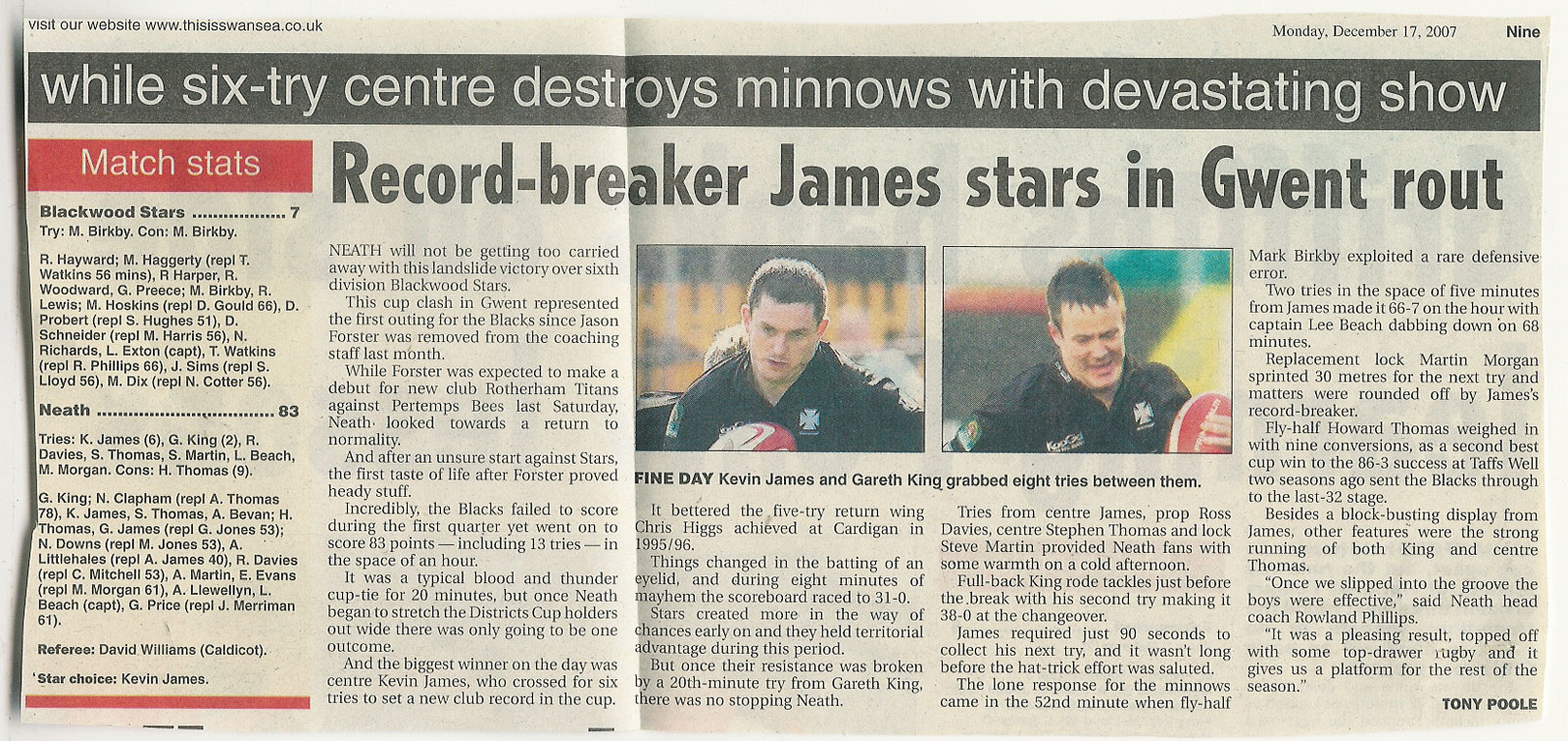 REGIONAL MATCHES IN WALES - CLICK HERE