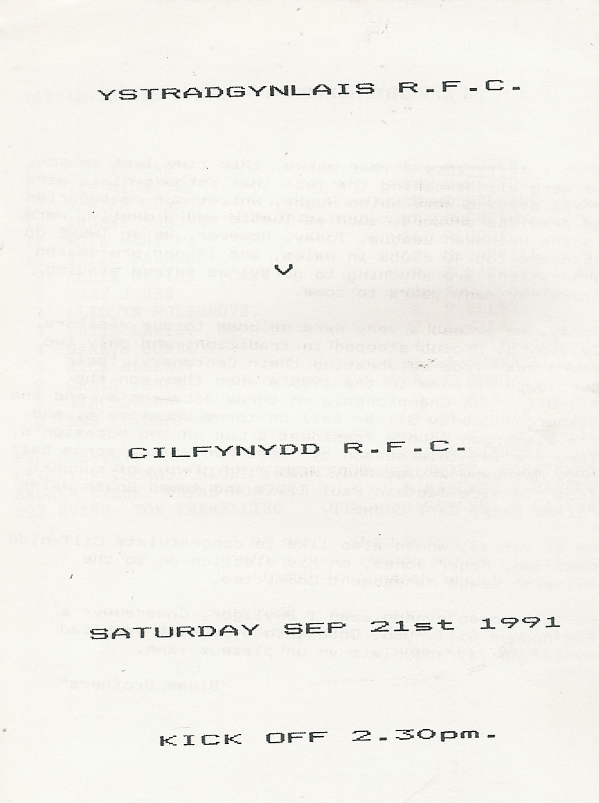 WELSH CLUB PROGRAMMES
