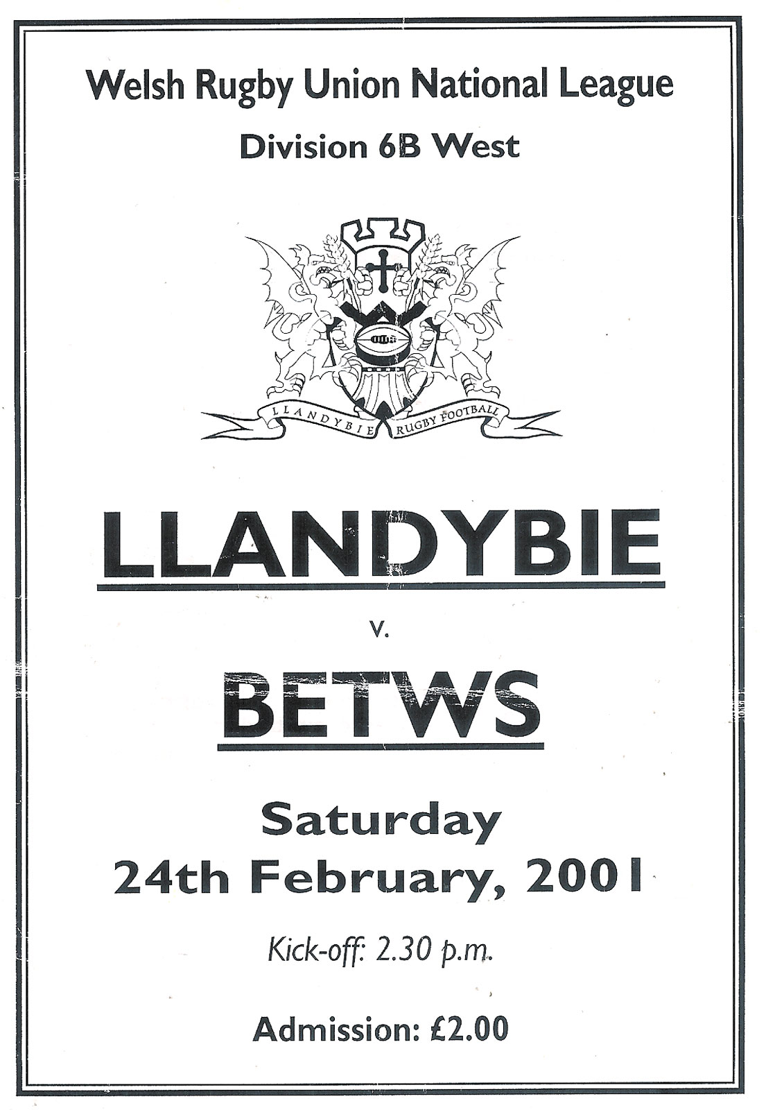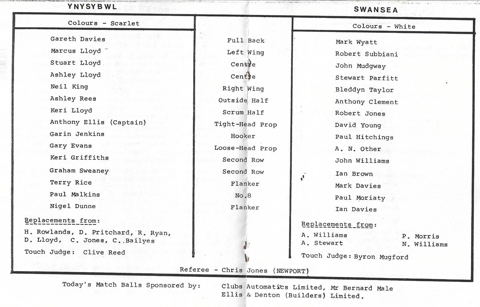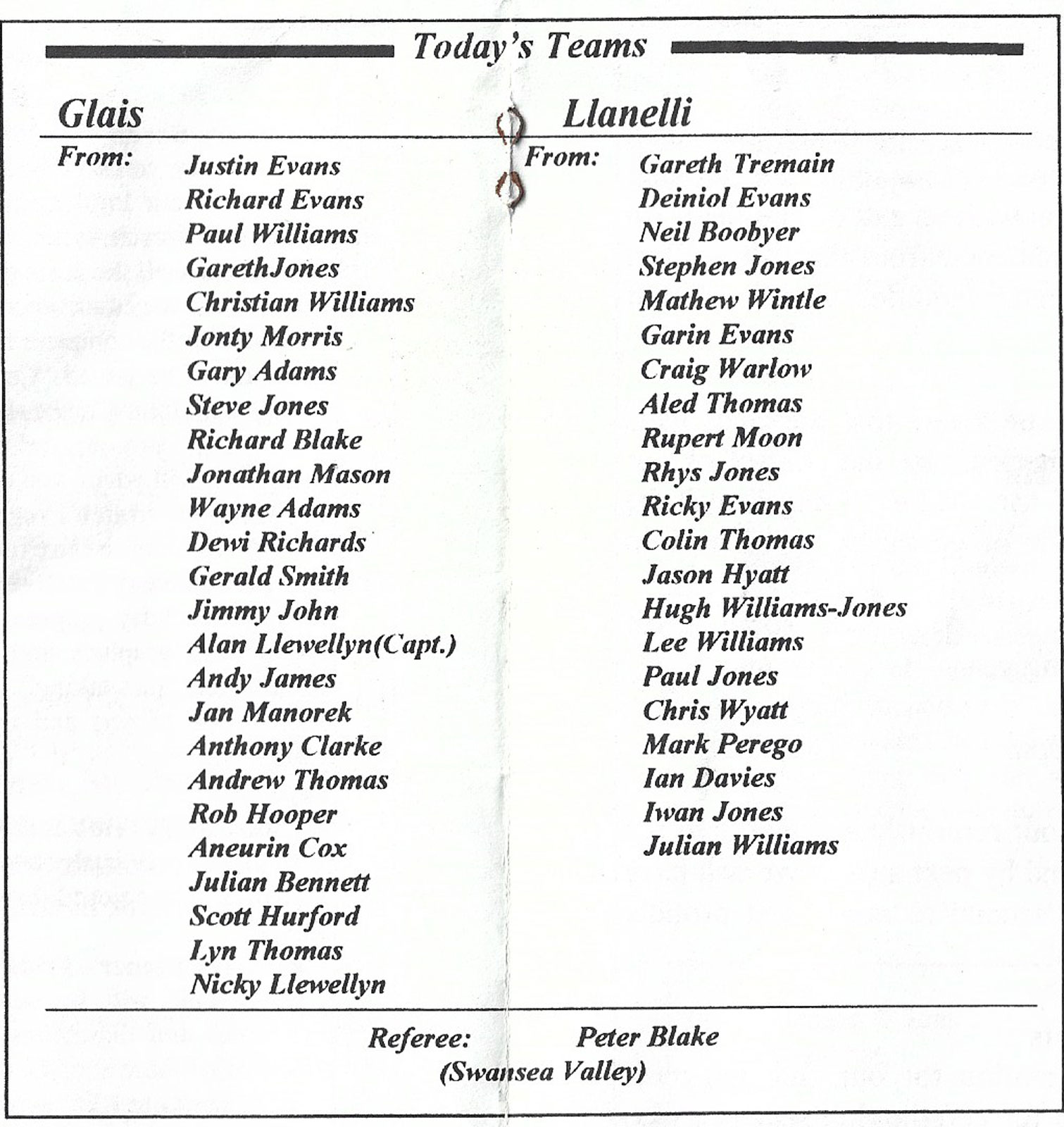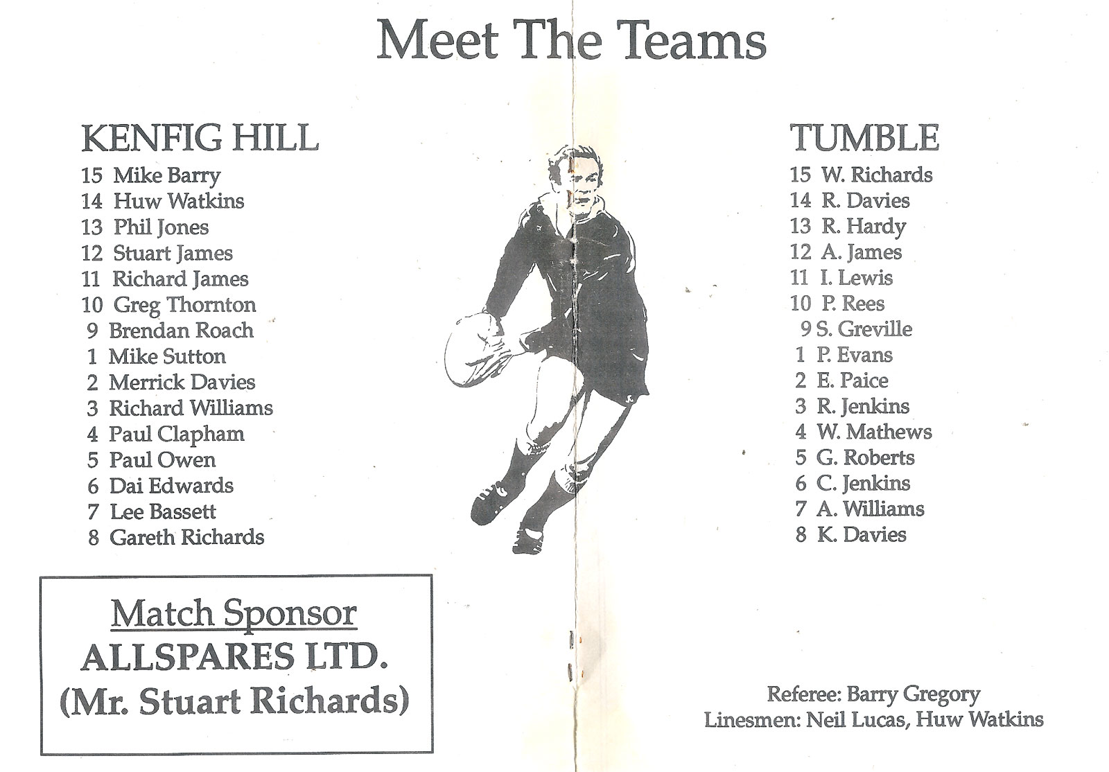 Tondu v Bonymaen | 29 Jan 2000 | Tondu | fair - heavy creases and nicks to