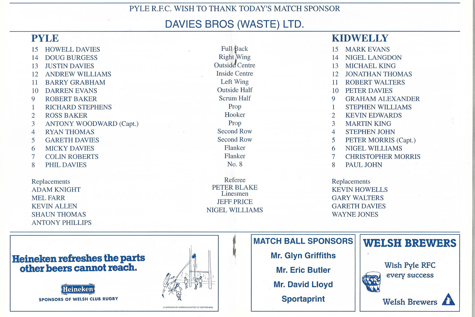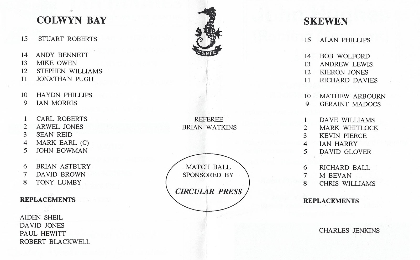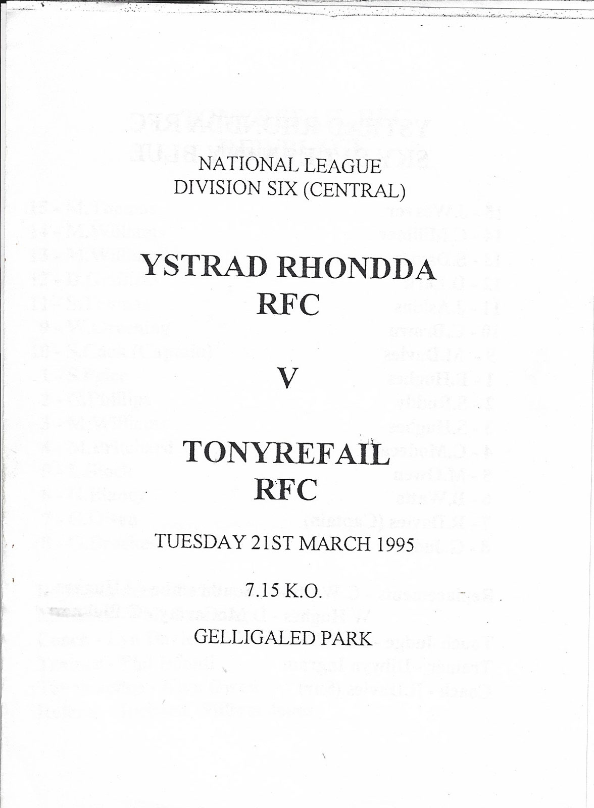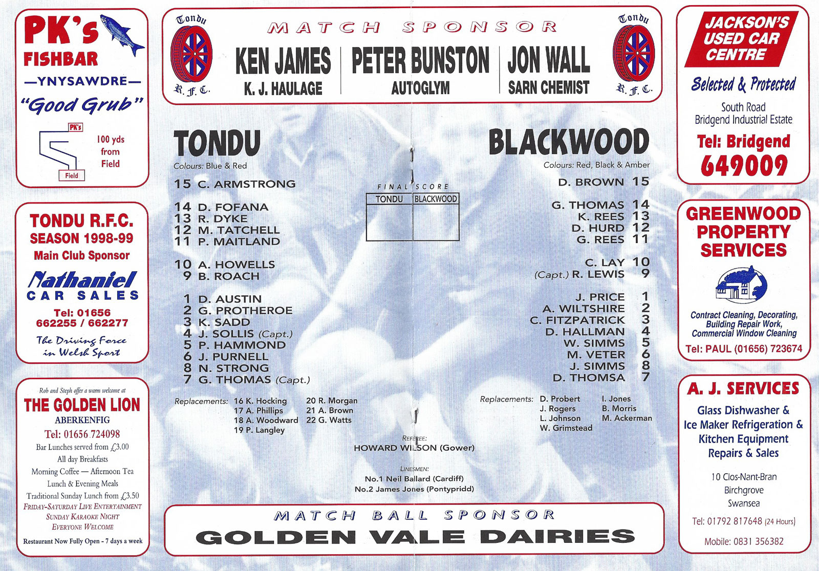Tondu v Bonymaen | 29 Jan 2000 | Tondu | fair - heavy creases and nicks to