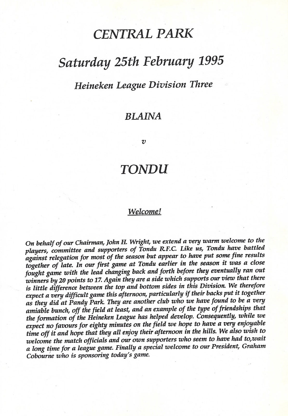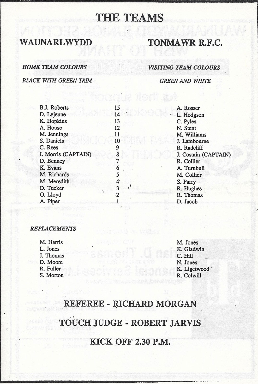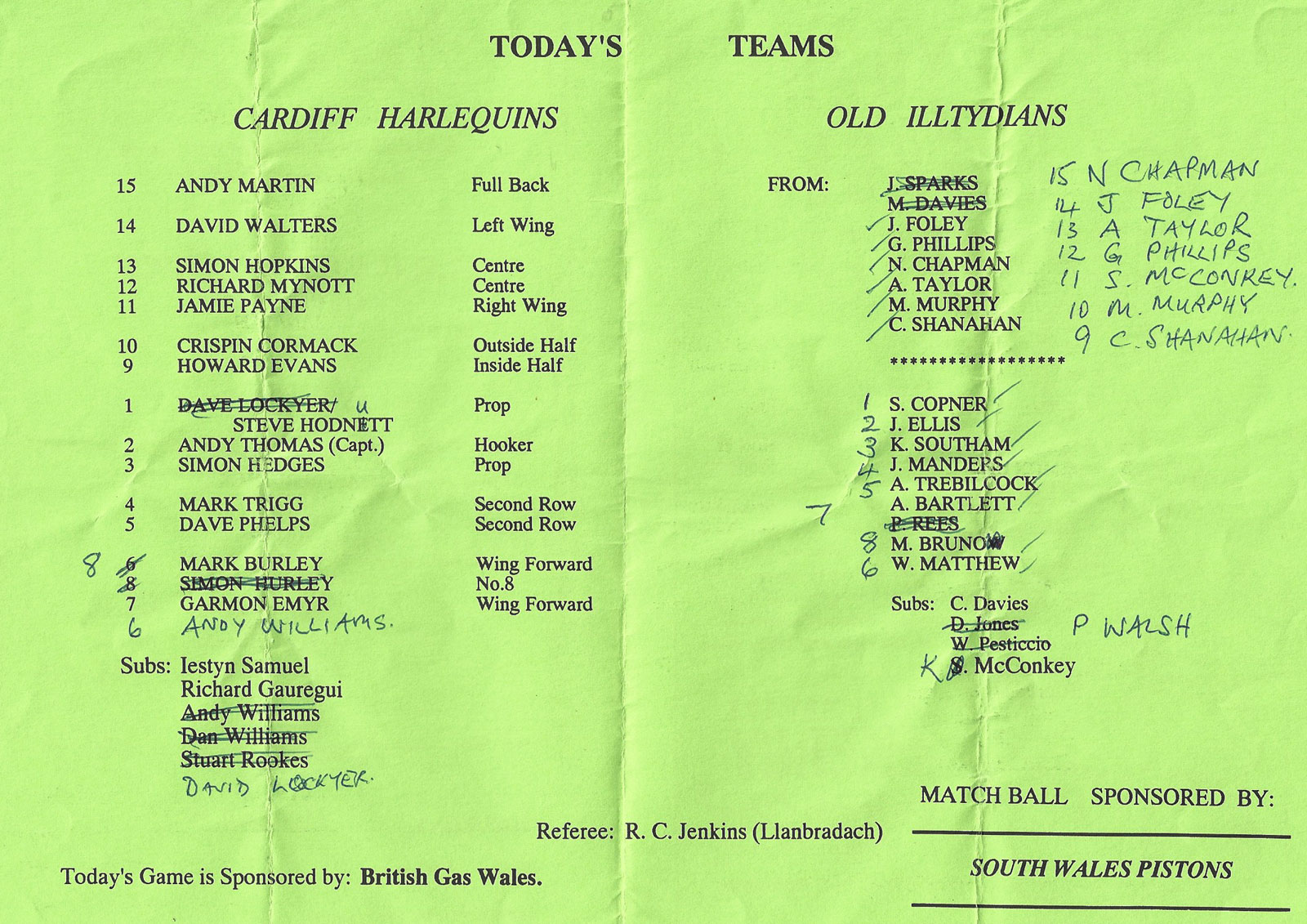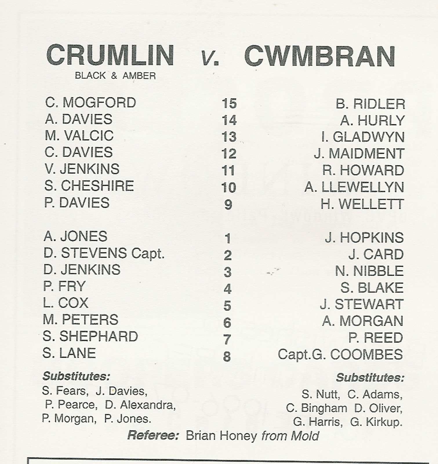 Tondu v Bonymaen | 29 Jan 2000 | Tondu | fair - heavy creases and nicks to