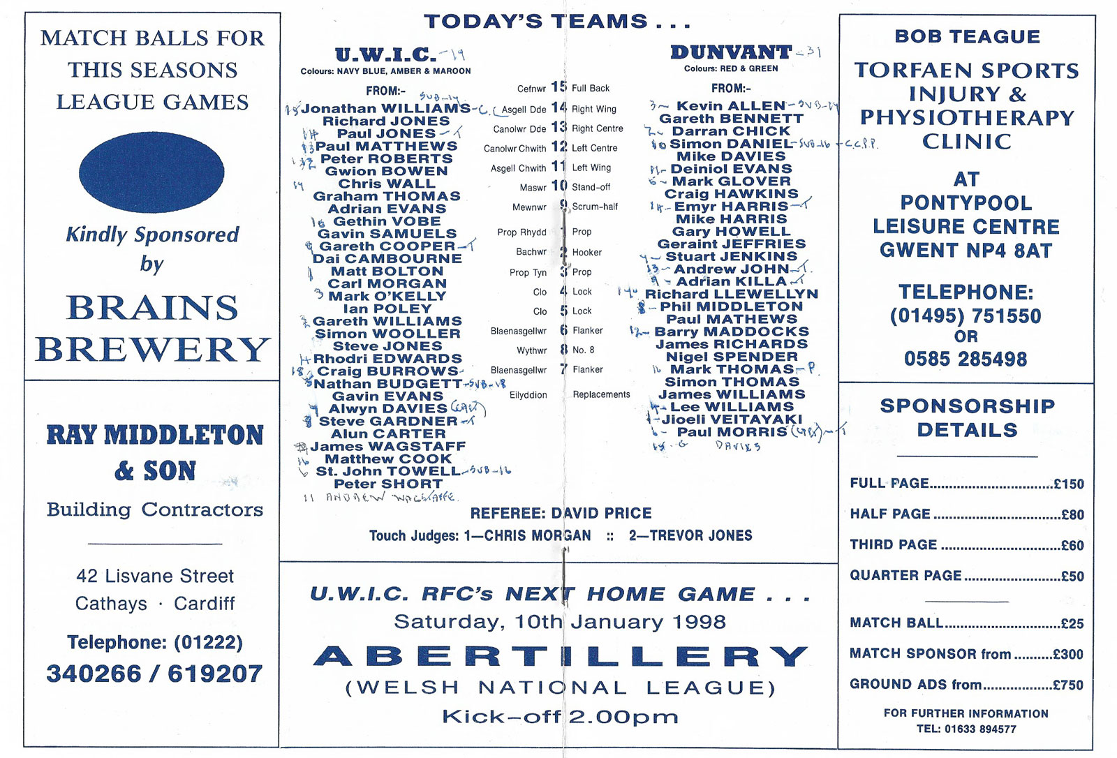 | PONTYPRIDD RUGBY PROGRAMMES & MEMORABILIA |