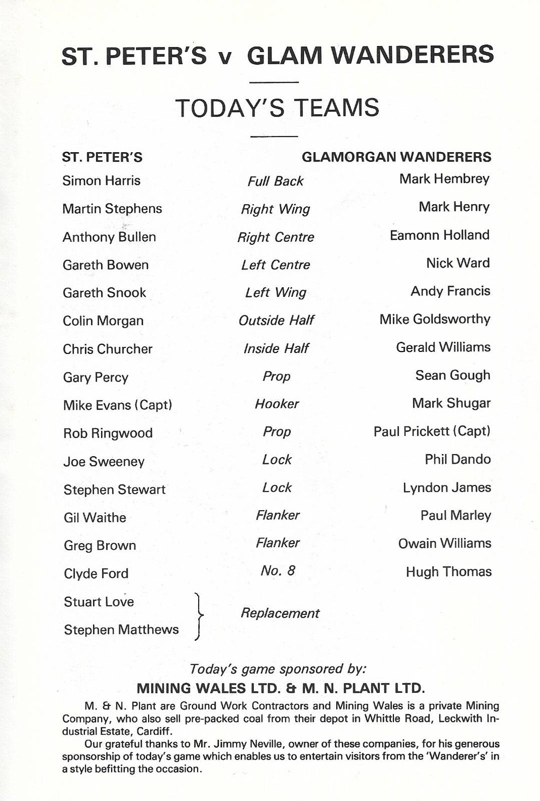 | MAESTEG RUGBY PROGRAMMES & MEMORABILIA |