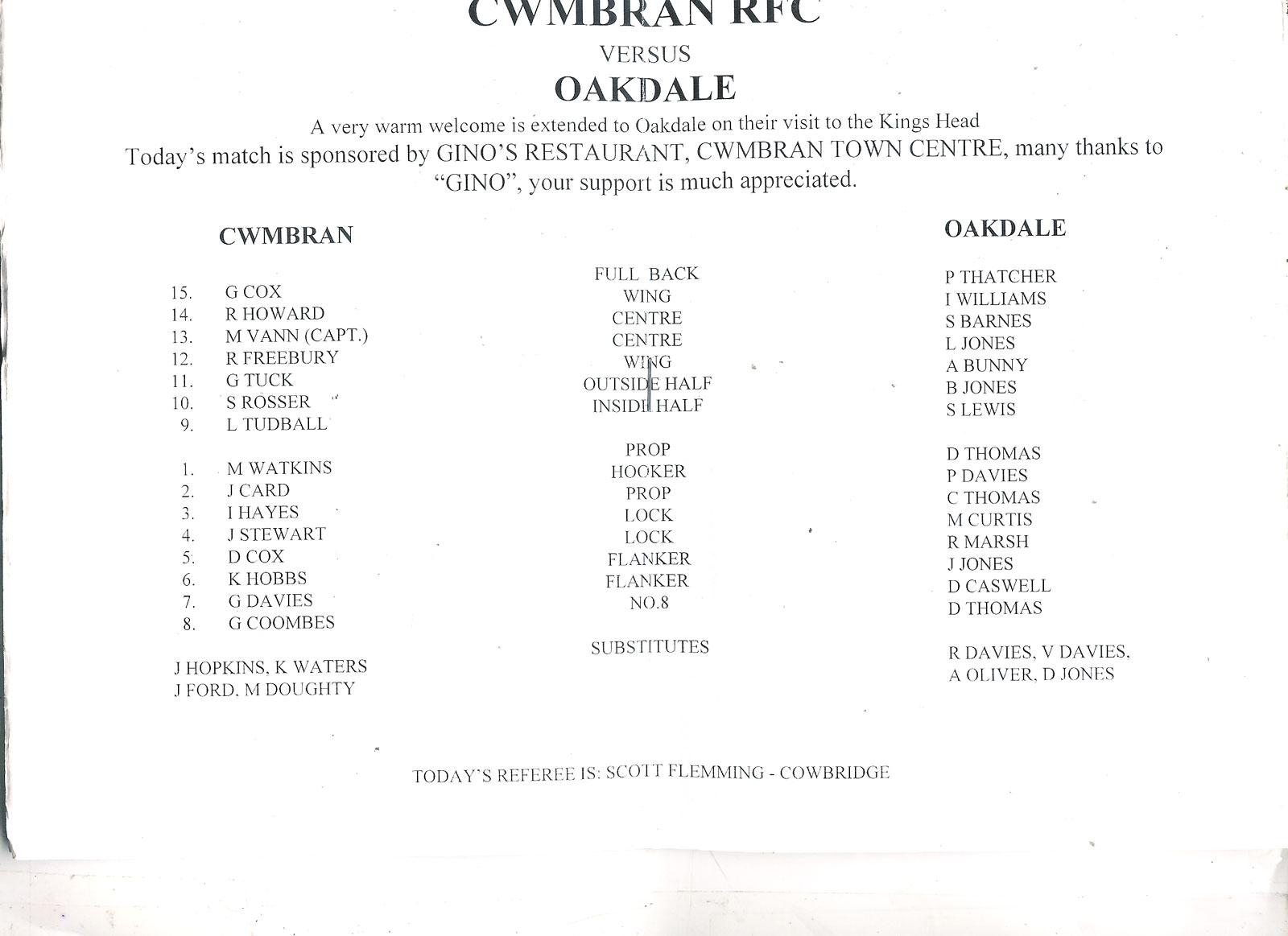 Tonmawr v Cwmgwrach | 2 Jan 2016 | Whitworth Ground, Tonmawr | fair - folded and creased