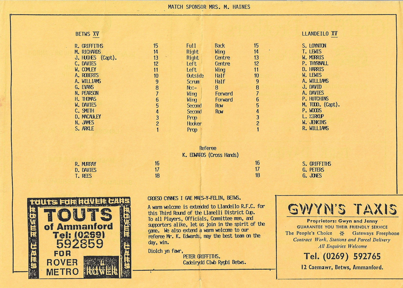 WELSH CLUB AND COUNTY PROGRAMMES |