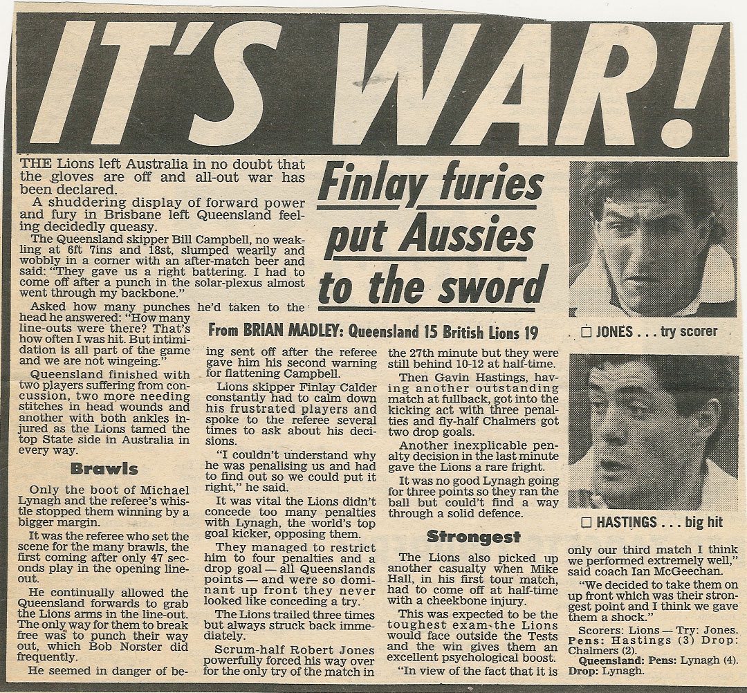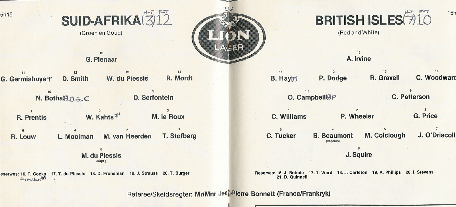 British Lions v Griquas (Griqualand West) | 8 Jul 1980 | Kimberley | 23-19 | very good