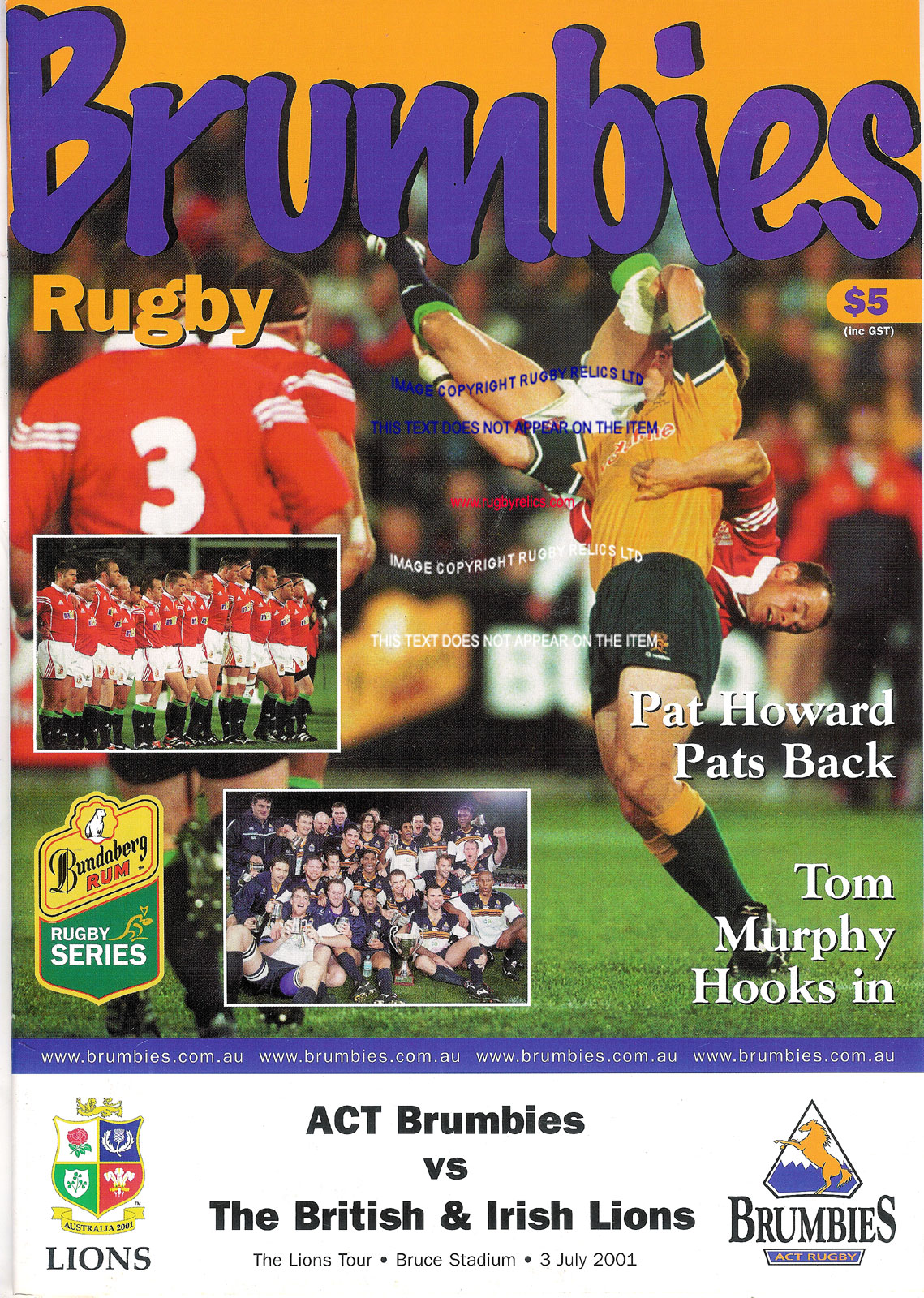 programmes (guaranteed first printing) from the British Lions tour of Australia 2001