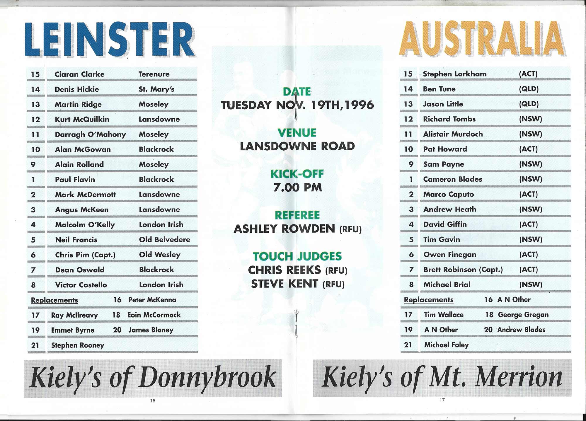 Ireland v Australia | 23 Nov 1996 | Dublin | 12-22 | very good