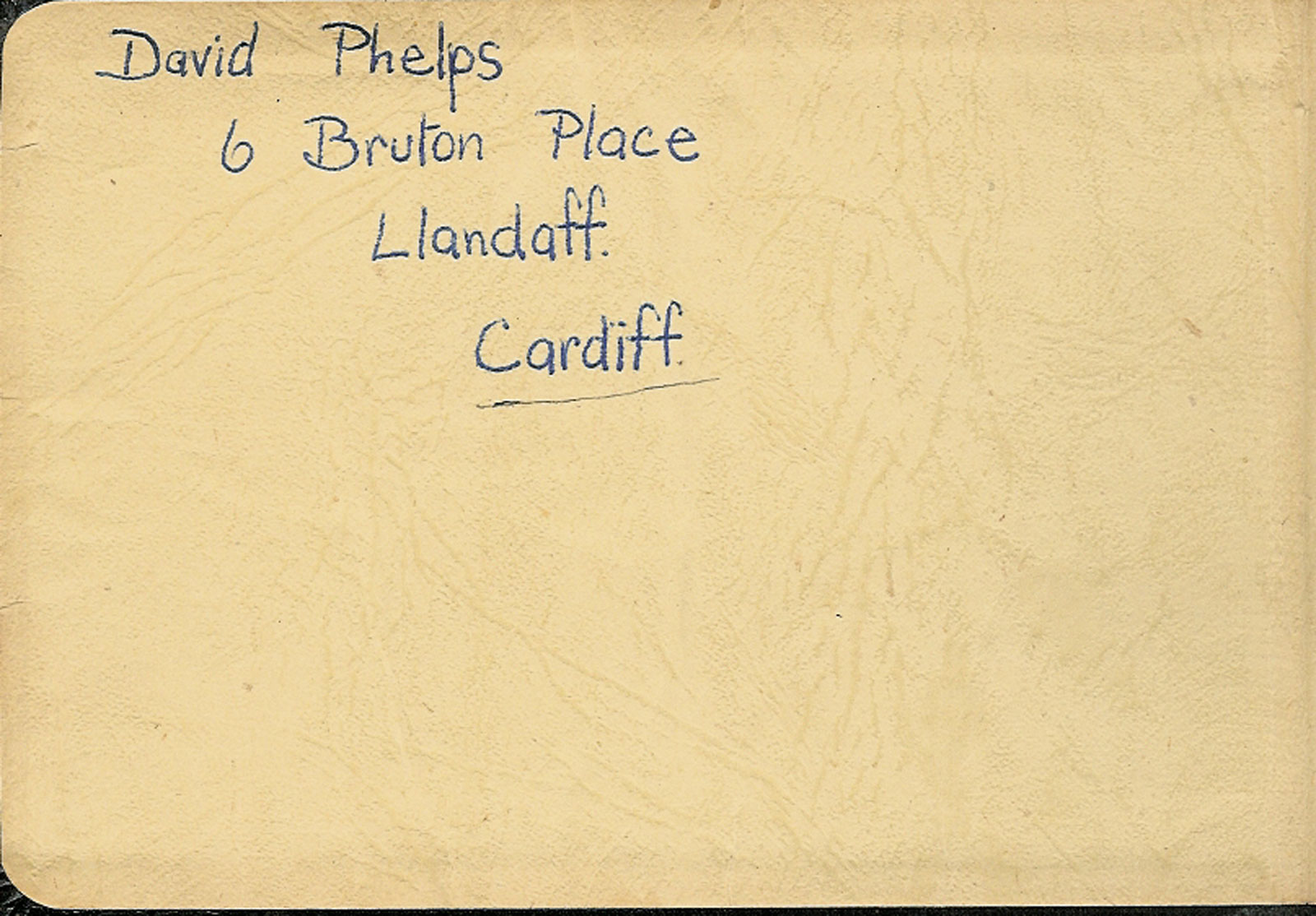 Cardiff RFC autographs pasted to a page including John Nelson, CD Williams