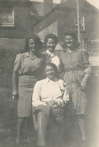| Marion in No 15 Eva St, the photo was taken here and not in No 13 because the garden was too untidy. The cat had to go because Anne was born and they didn't want the cat smothering the baby. | Marion & Betty Tallamy (Betty lived up the hill from George St in Neath) in Exeter with 2 sisters originally from Neath but then living in Exeter. Because the girl in front had married a butcher Marion and Betty went for Sunday lunch every week to their house. Lunches were good ! |