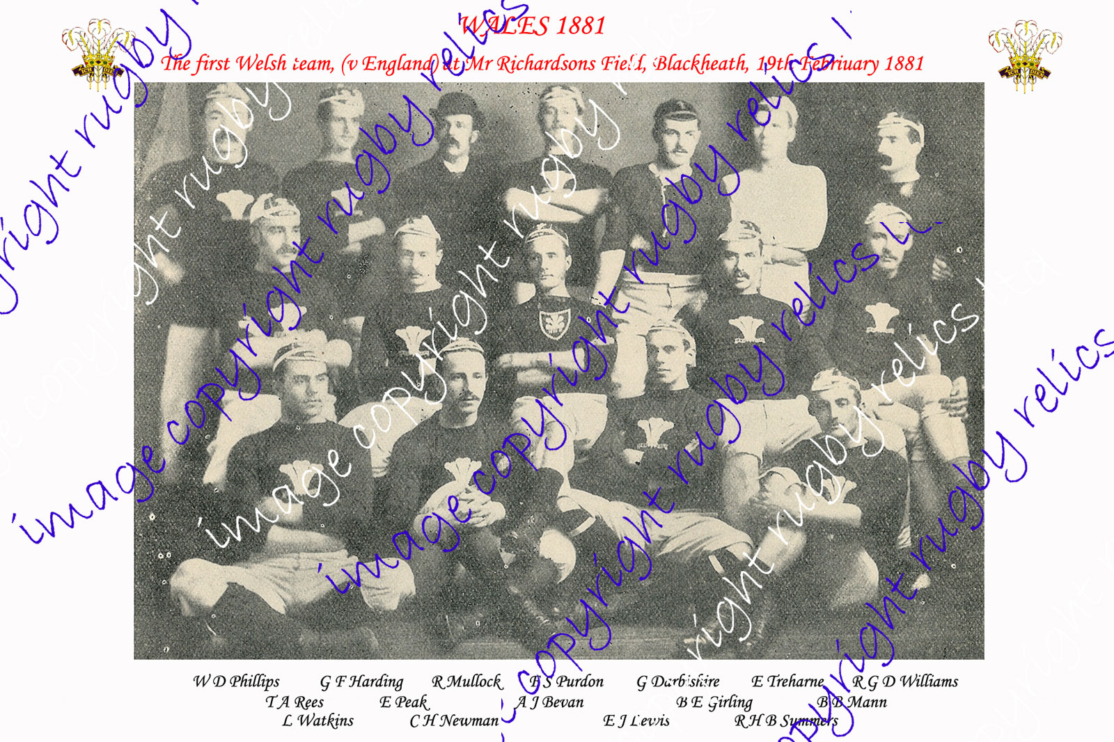 4 January 1896. Wales lost the match 25-0. The players and officials in this photograph are as follows: