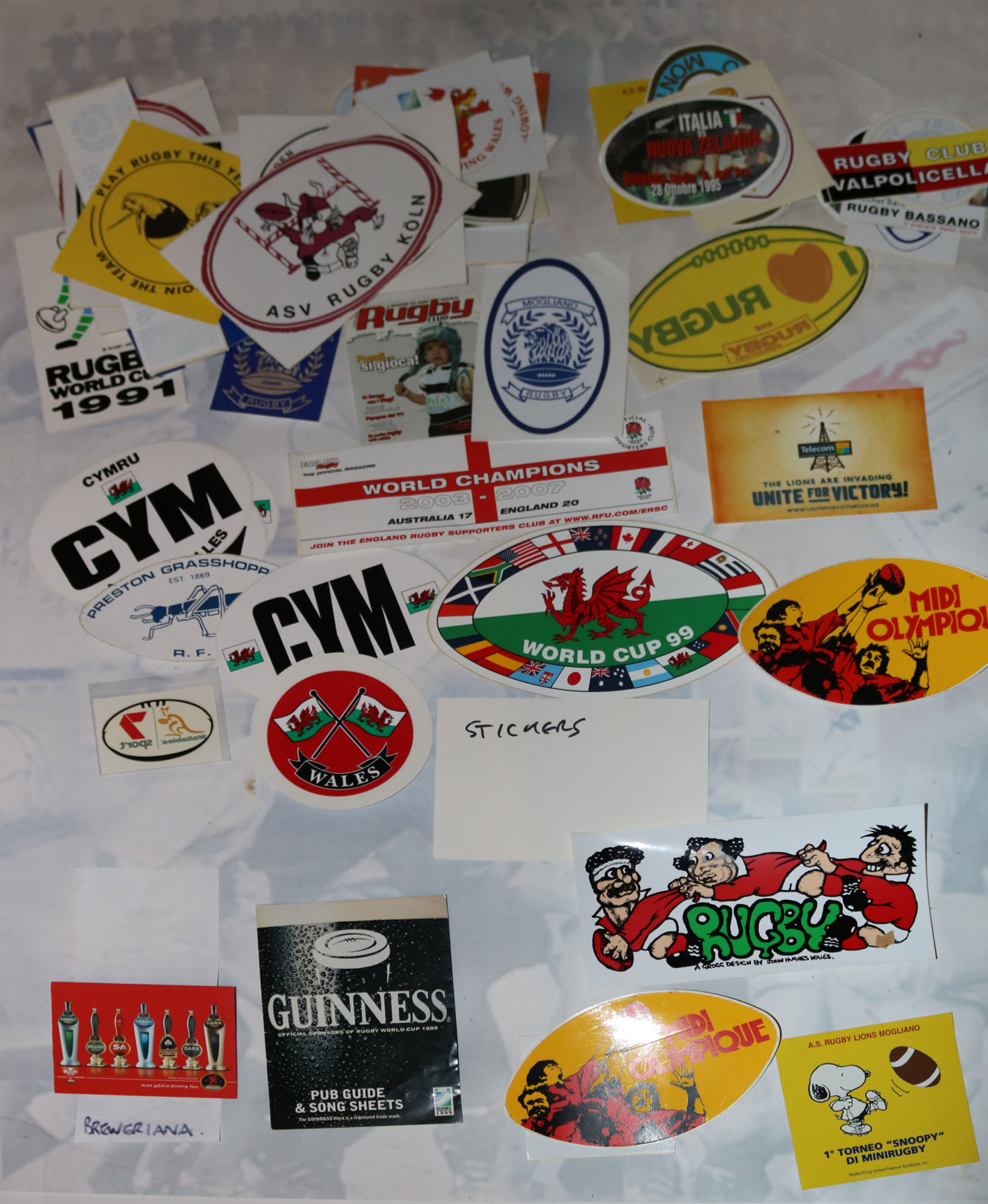 A selection of interesting items of rugby ephemera, memorabilia & collectibles from our extensive stock. The items in the selection are of our choosing and may include: Fixture lists, membership cards, yearbooks, programmes, tickets, advertising leaflets, booklets, stadium passes, press and hospitality lanyards, books, postcards, photographs, itinerary cards, dinner menu cards and invitations, compliment slips, letters on headed notepaper, autographs, newspaper supplements, magazines, stamps, first day covers, philatelic items etc, The following photo is an example of memorabilia included in these bundles. Choose in packages of 20, 50, 100 or 1000 - Ref: RL999-mmmmmi.gp-lucky.dip(+