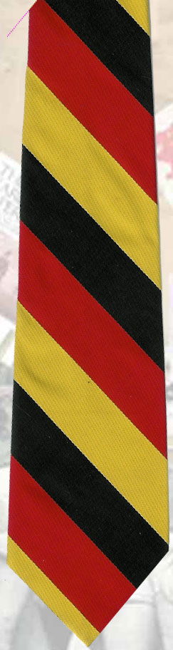 Red, Black and yellow stripes tie. made by Gibson Price. 8cm