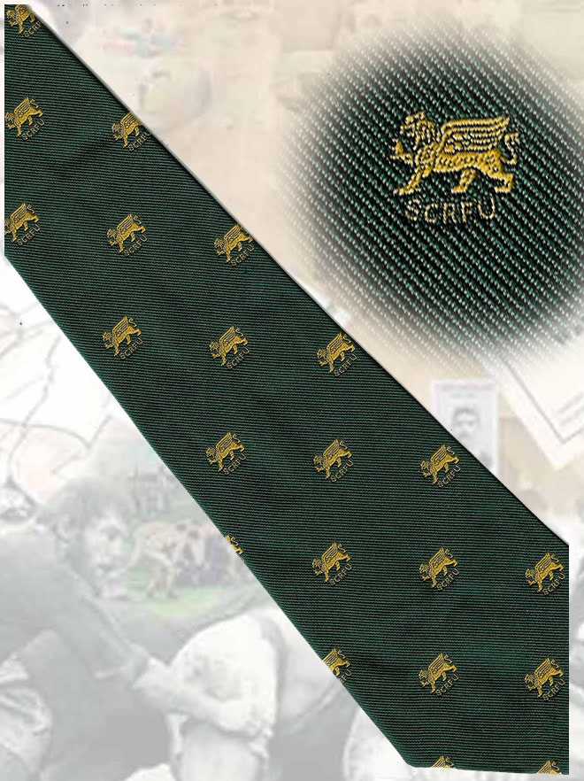 Green tie - with a dragon and the letters S.C.R.F.U written underneath. Made by