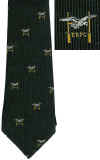 Green tie - red and white diagonal stripes and an unknown crest, made