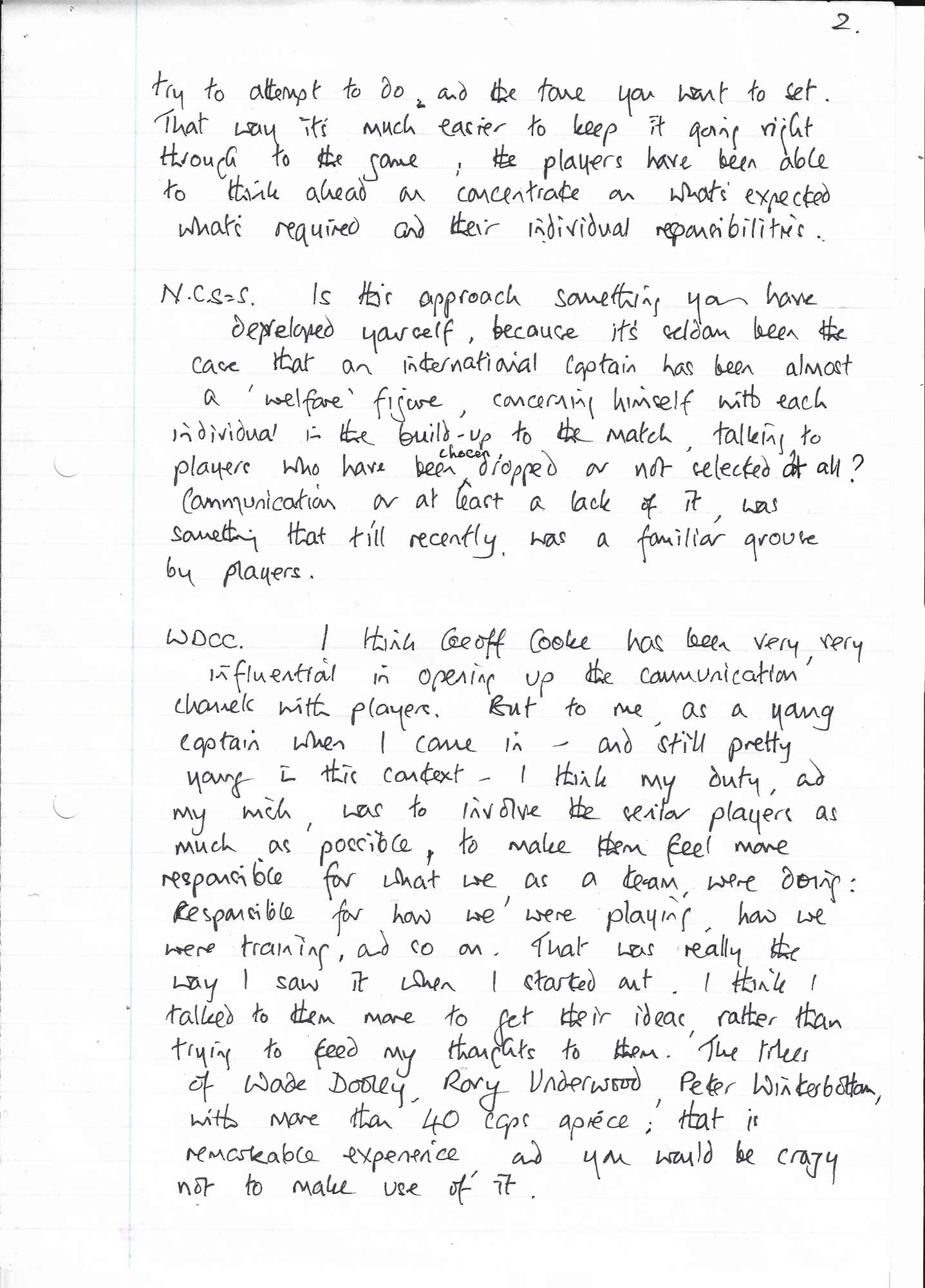CATALOGUING NOTES by Dai Richards - I believe this interview was published in Rugby World & Post. I've only flicked through the content of this interview so have almost certainly missed something. Viewers are invited to review this interview for a fuller analysis of its content. |