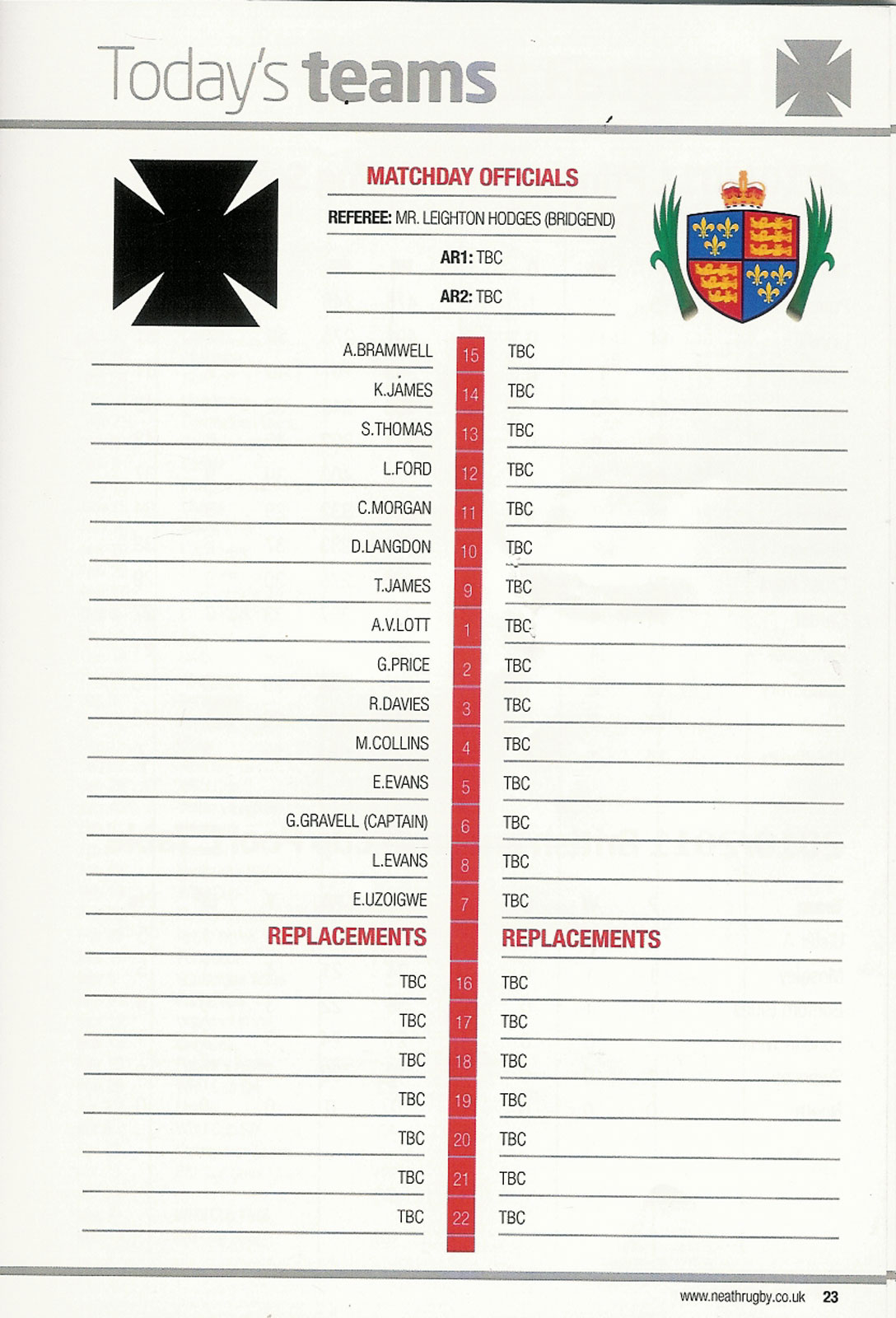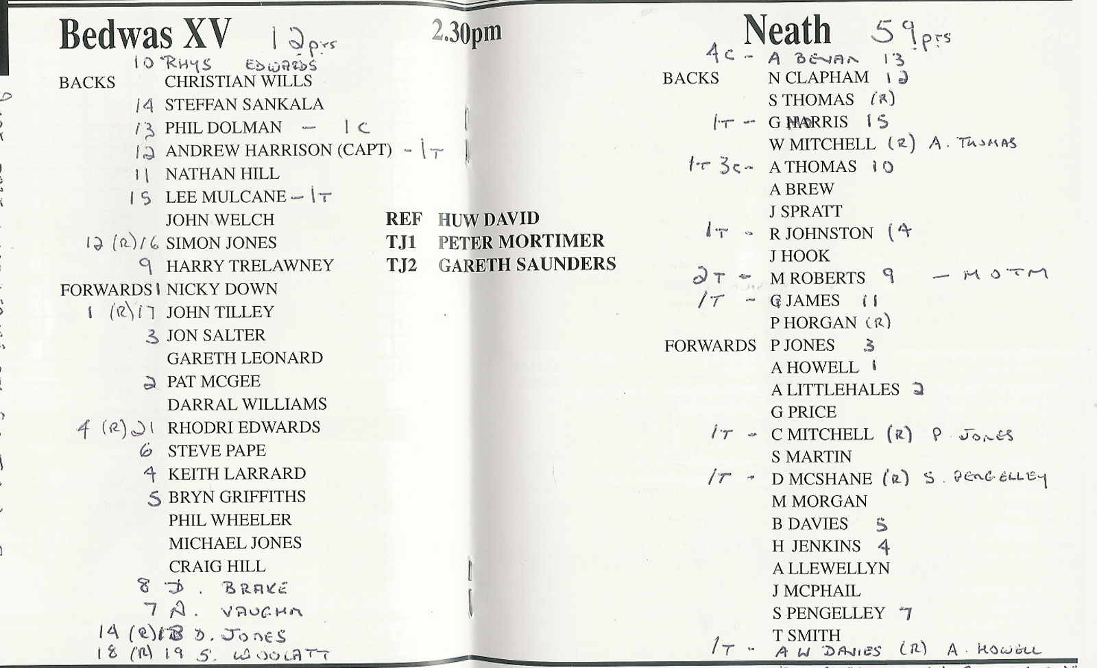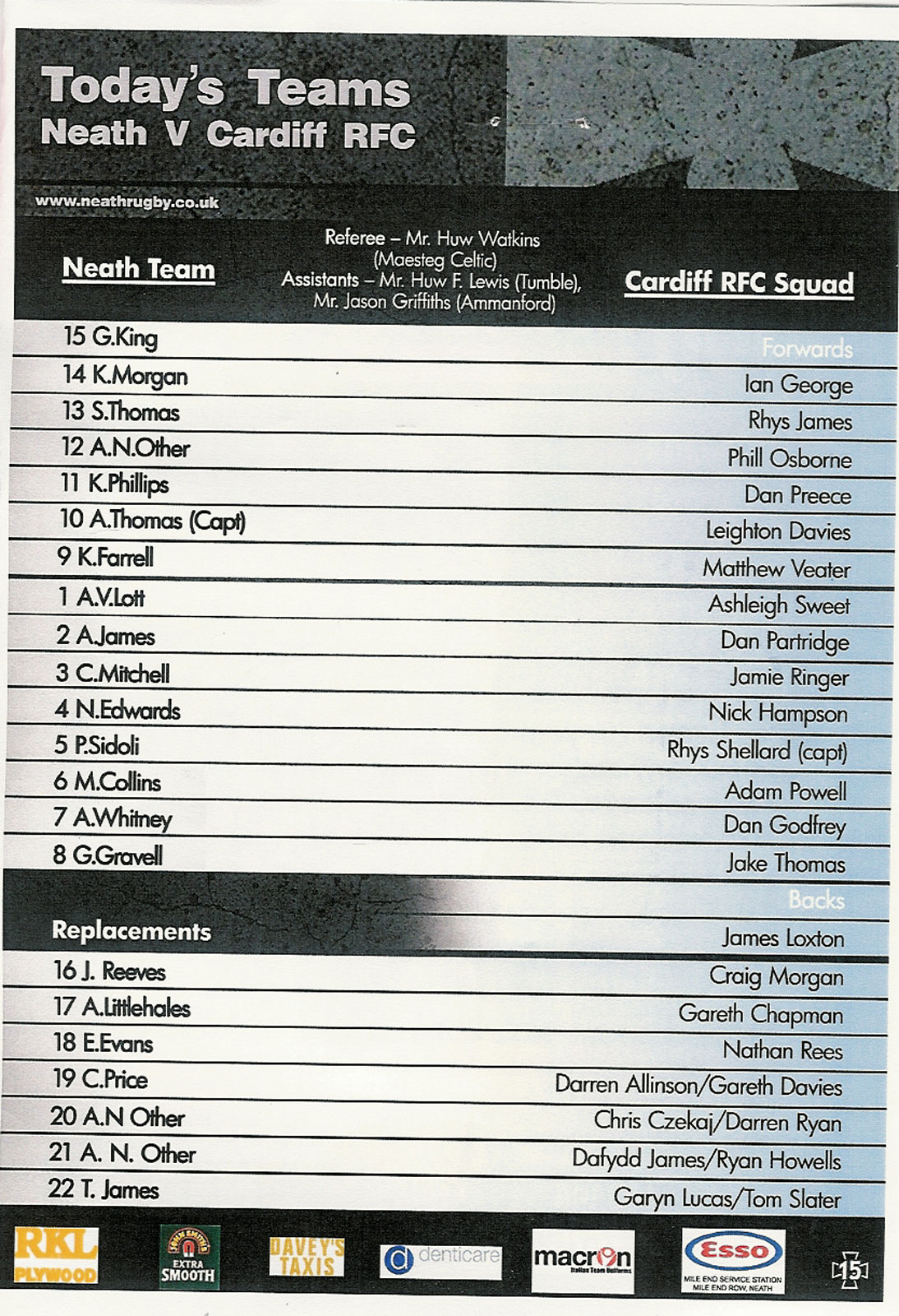 Neath v Llandovery | 29 Oct 2005 | The Gnoll, Neath | Required | ||