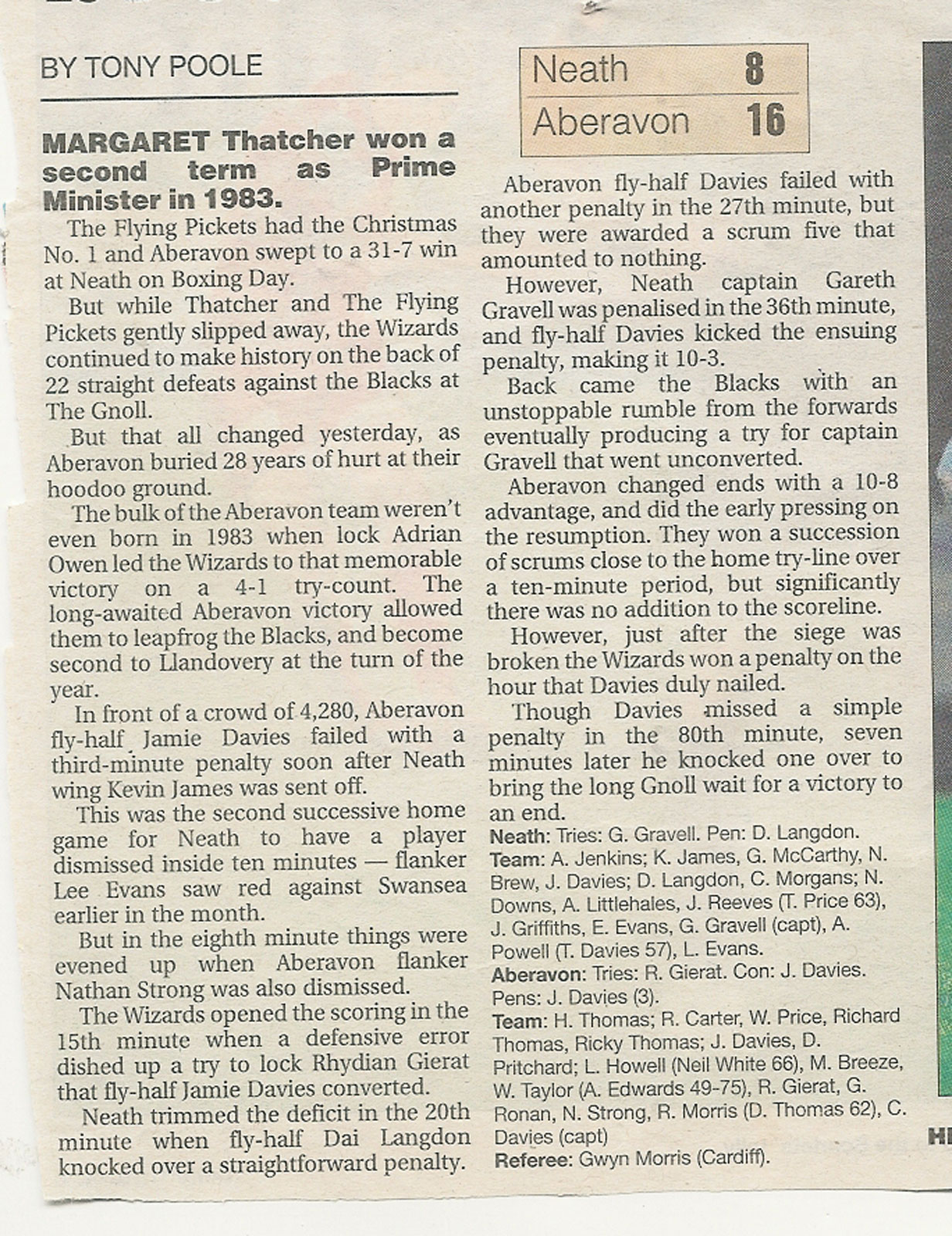Neath v Aberavon | 26 Dec 2011 | The Gnoll, Neath | 22-14 | match report | |