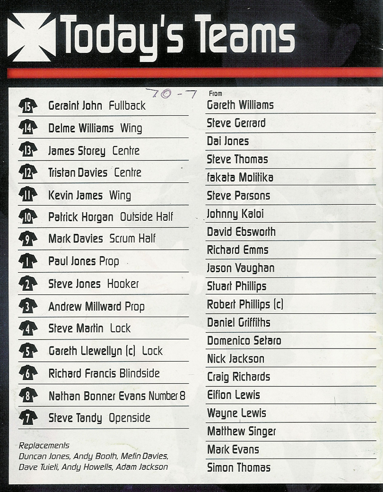 10 Mar 2007 | The Gnoll, Neath | 38-24 | Brian Williams charity match | match report |