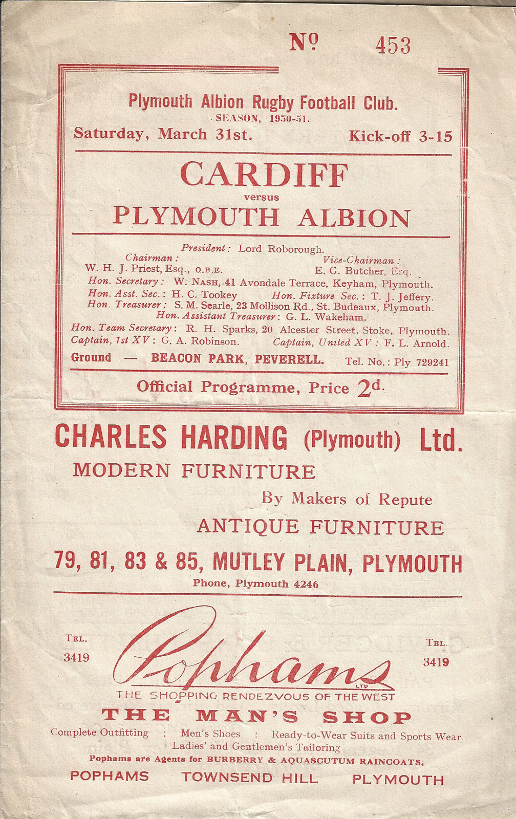 40 page programme celebrating 75th anniversary of Cardiff RFC. many
