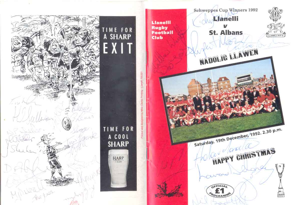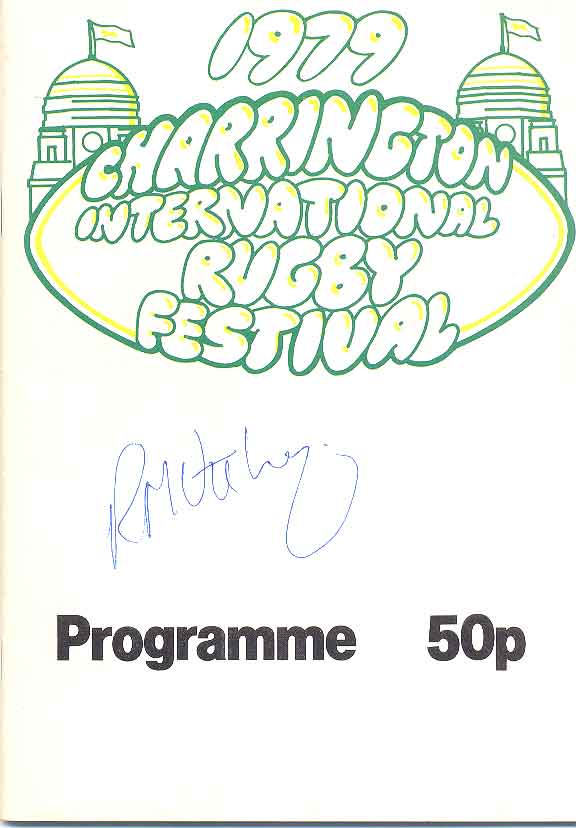 CANADA v WALES 19th JULY 1997 SIGNED PROGRAMME 47 AUTOGRAPHS - This programme has been signed by the complete Welsh playing squad, 32 members including Gwyn Jones, Nigel Walker, Gareth Thomas, Colin Charvis and Gareth llewellyn, plus national coach Kevin Bowring and Director of Rugby Terry Cobner. Additional to the Welsh squad 13 members of the Canadian squad have autographed the programme to include John Graf, Rod Snow and Gareth Rees. This programme is in very good condition and it is accompanied by a COA guaranteeing that the autographs are original and authentic. Ref: aupr.infu.cawa1997-au47 - £75.00 |