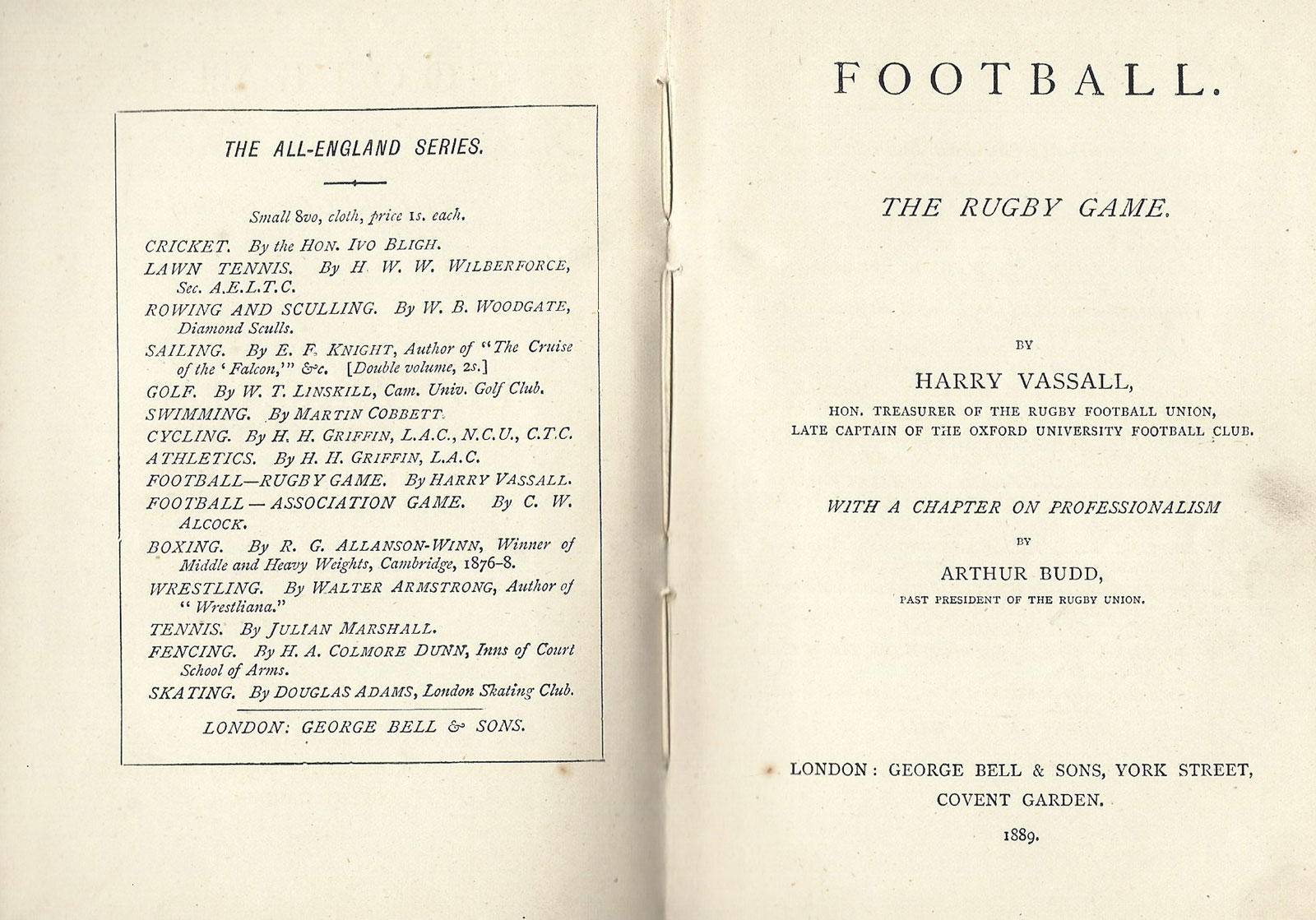 EARLY RUGBY  -  MODERN HISTORIES  -  LAWS  - TOURNAMENTS/COMPETITIONS  -  ANTHOLOGIES  -  HISTORIES MISC  -  PHOTOGRAPHIC COMPILATIONS  -  REFERENCE  -  RUGBY SCHOOL  -  GENERAL SPORT WITH RUGBY CONTENT