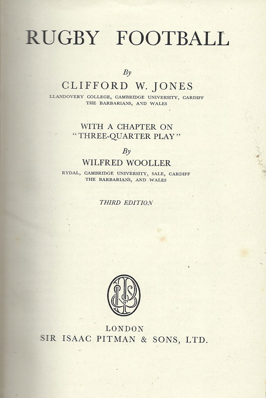 numerous sporting stories covering a variety of sports including boxing, angling, cricket. The book looks to be an anthology of fictional stories but a closer inspection may reveal otherwise. the rugby content is limited to a chapter from 'Tom Brown's Schooldays' relating to a football match at Rugby School, a second-hand hardback without a dust wrapper, a copy previously owned and signed by journalist JBG Thomas