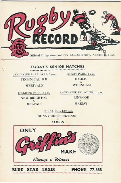 Matches include - Technical-Shirley v High School Old Boys, New Brighton v Marist, Belfast v Albion 16 pages - team info |