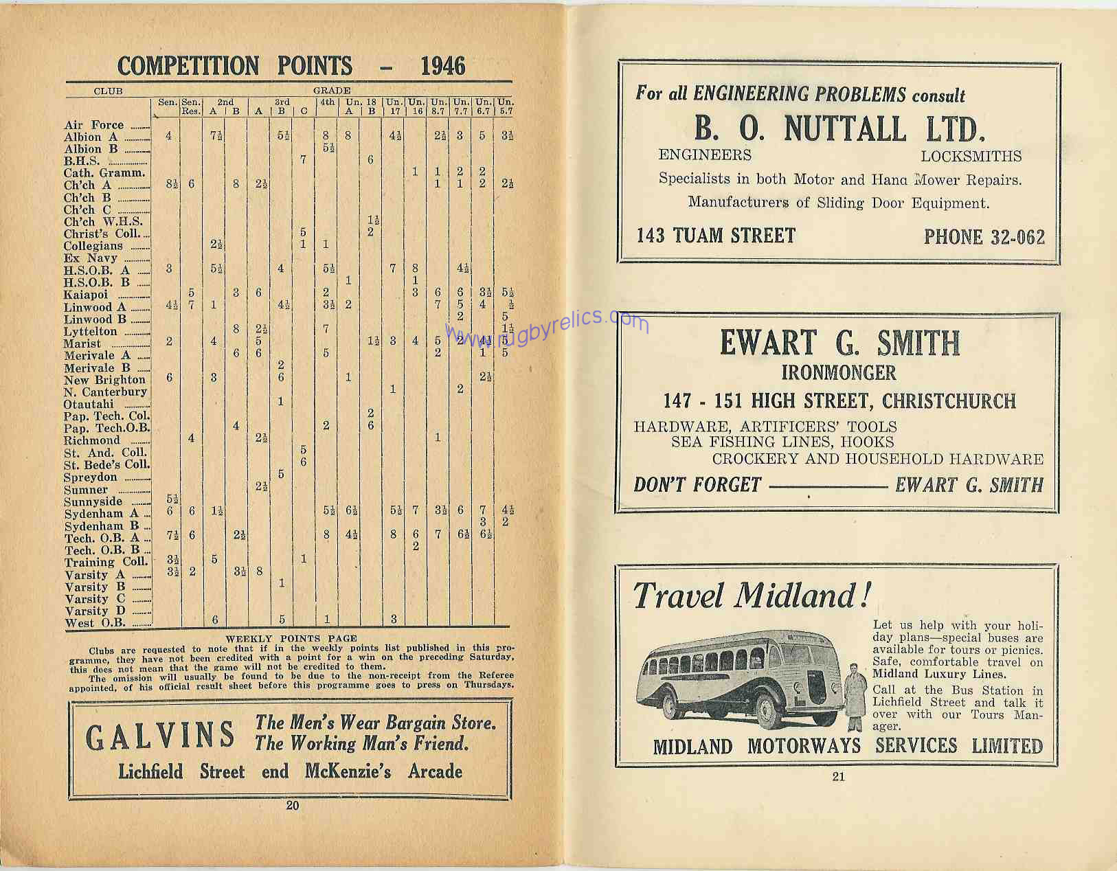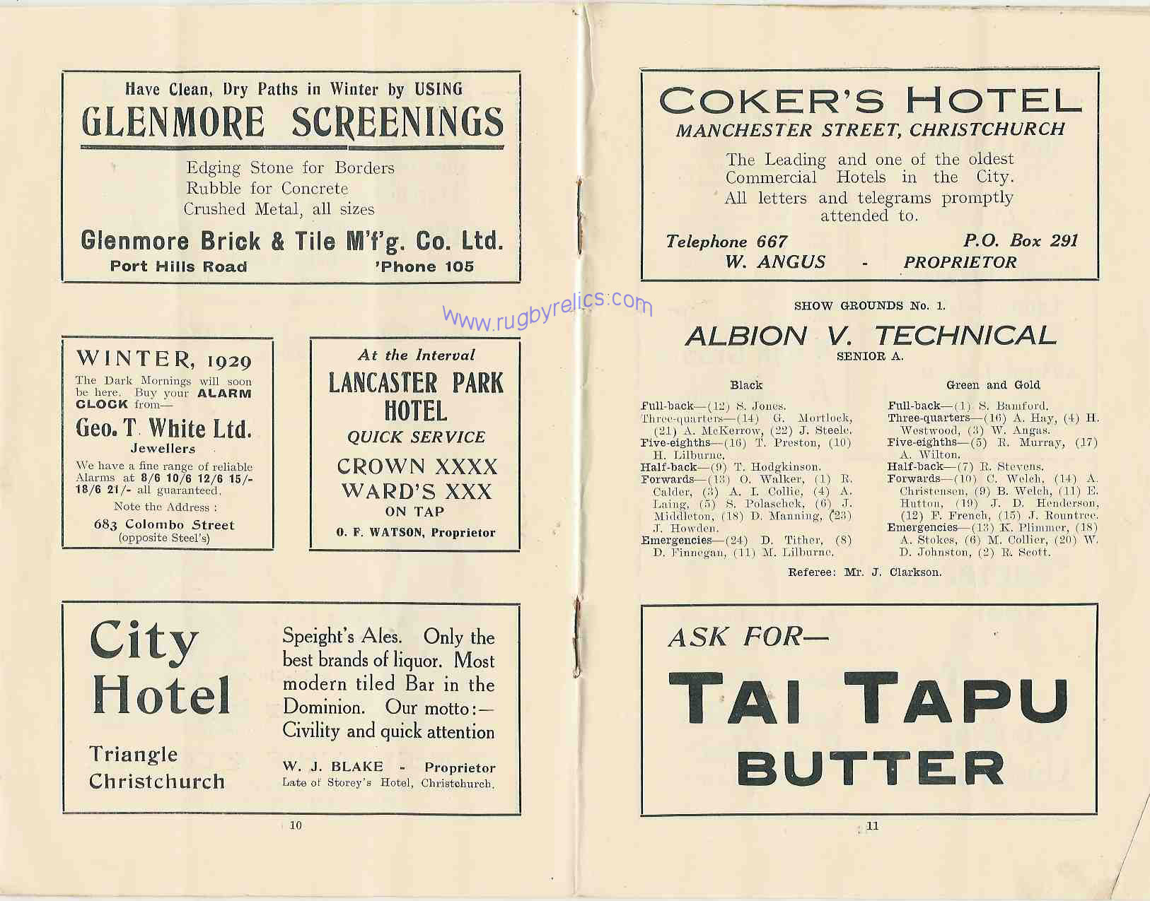 Matches include - Technical v Merivale, Albion v Linwood, Varsity v Christchurch 16 pages |