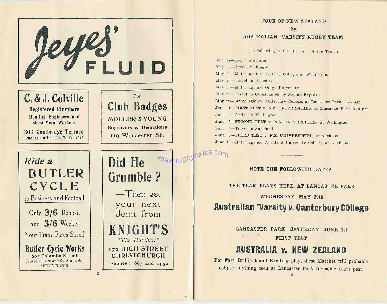 Matches include - Christchurch v Varsity, New Brighton v Sydenham, Albion v Belfast 16 pages - team info |