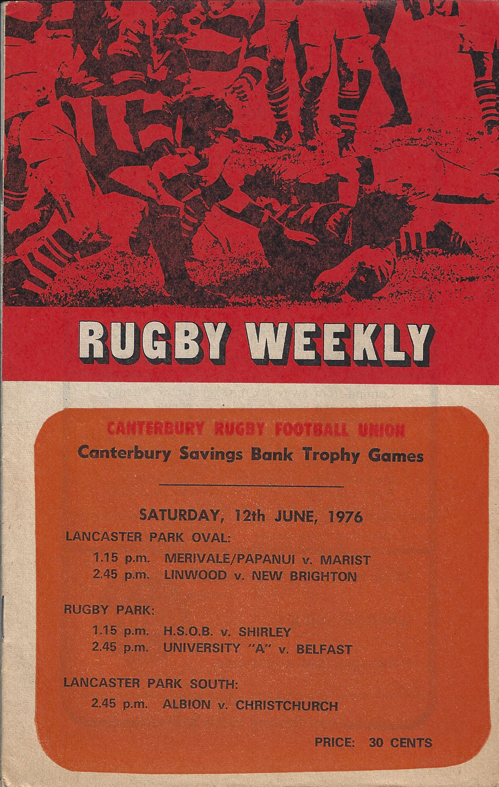 CANTERBURY RUGBY WEEKLY Matches include - Sydenham v Christchurch, Albion v Varsity, Merivale v Marist 18 pages |