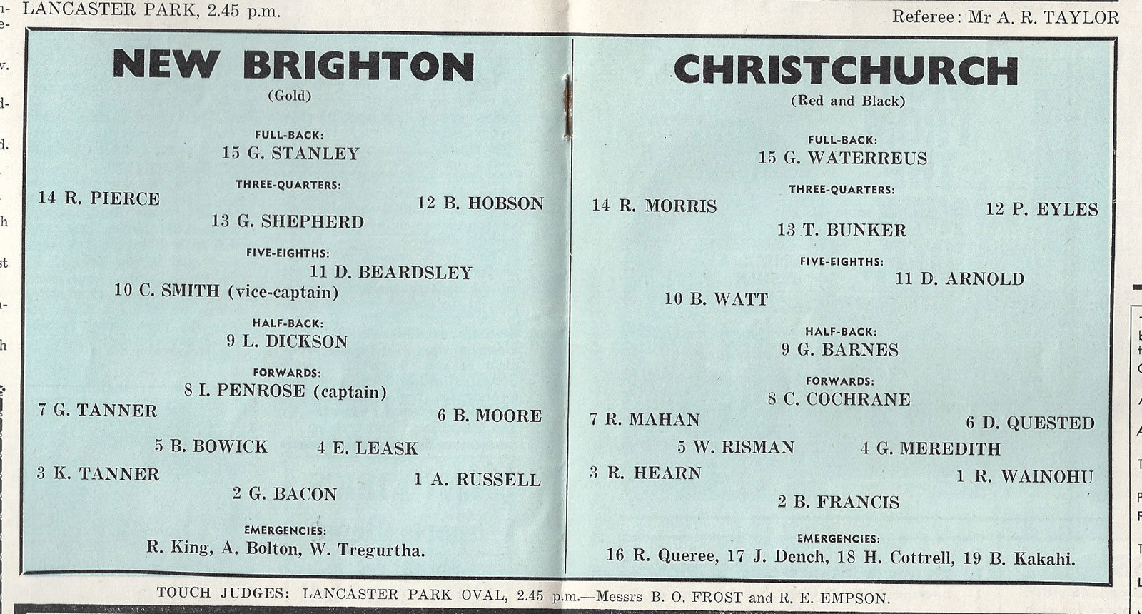 Matches include - Shirley v New Brighton, Sydenham v Marist, Suburbs v Christchurch 16 pages - team info |