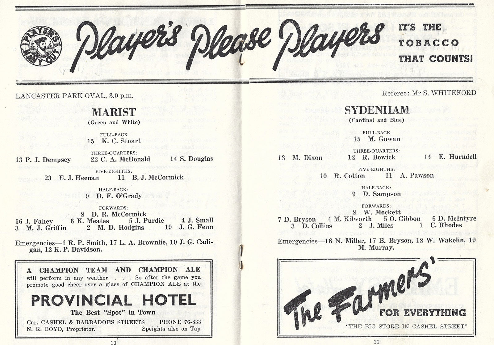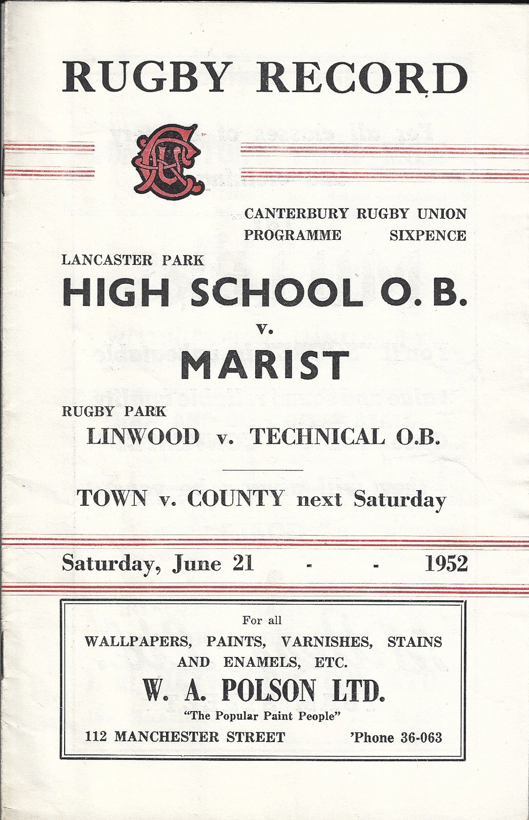 Matches include - Marist v Varsity, Linwood v Sydenham, High School Old Boys v Sunnyside-Spreydon 16 pages - team info |