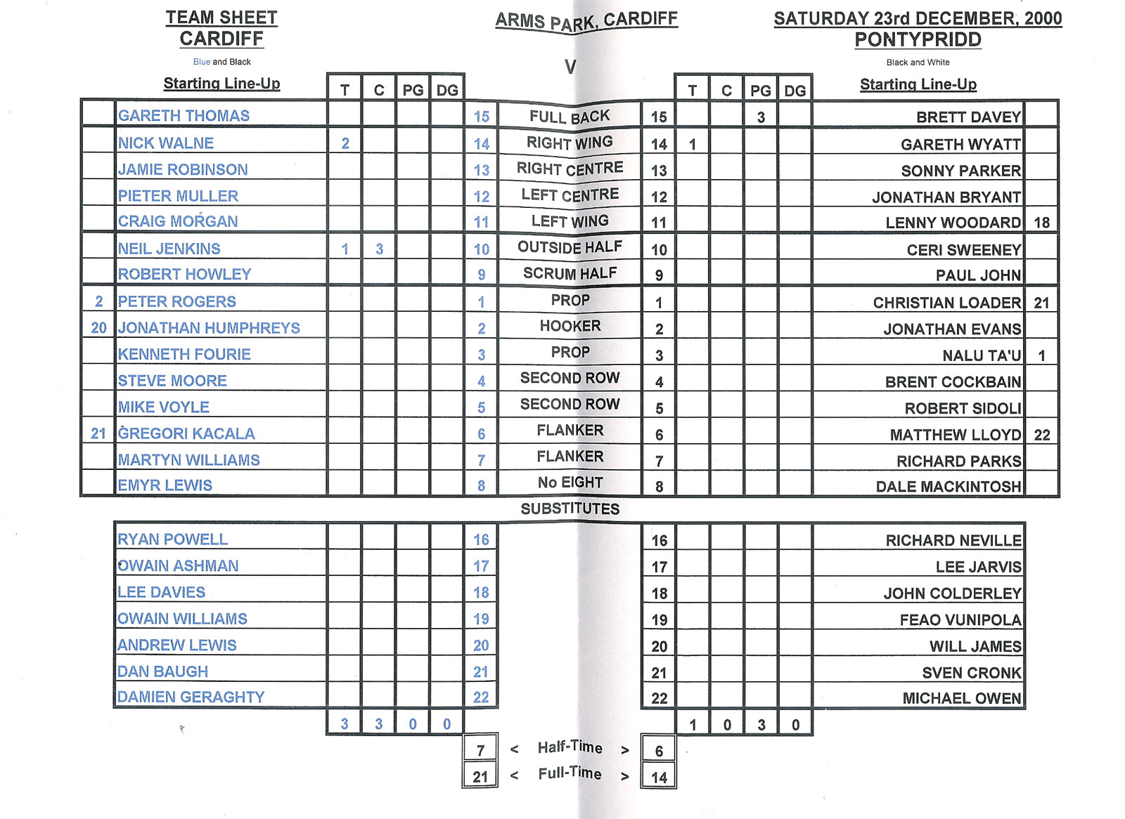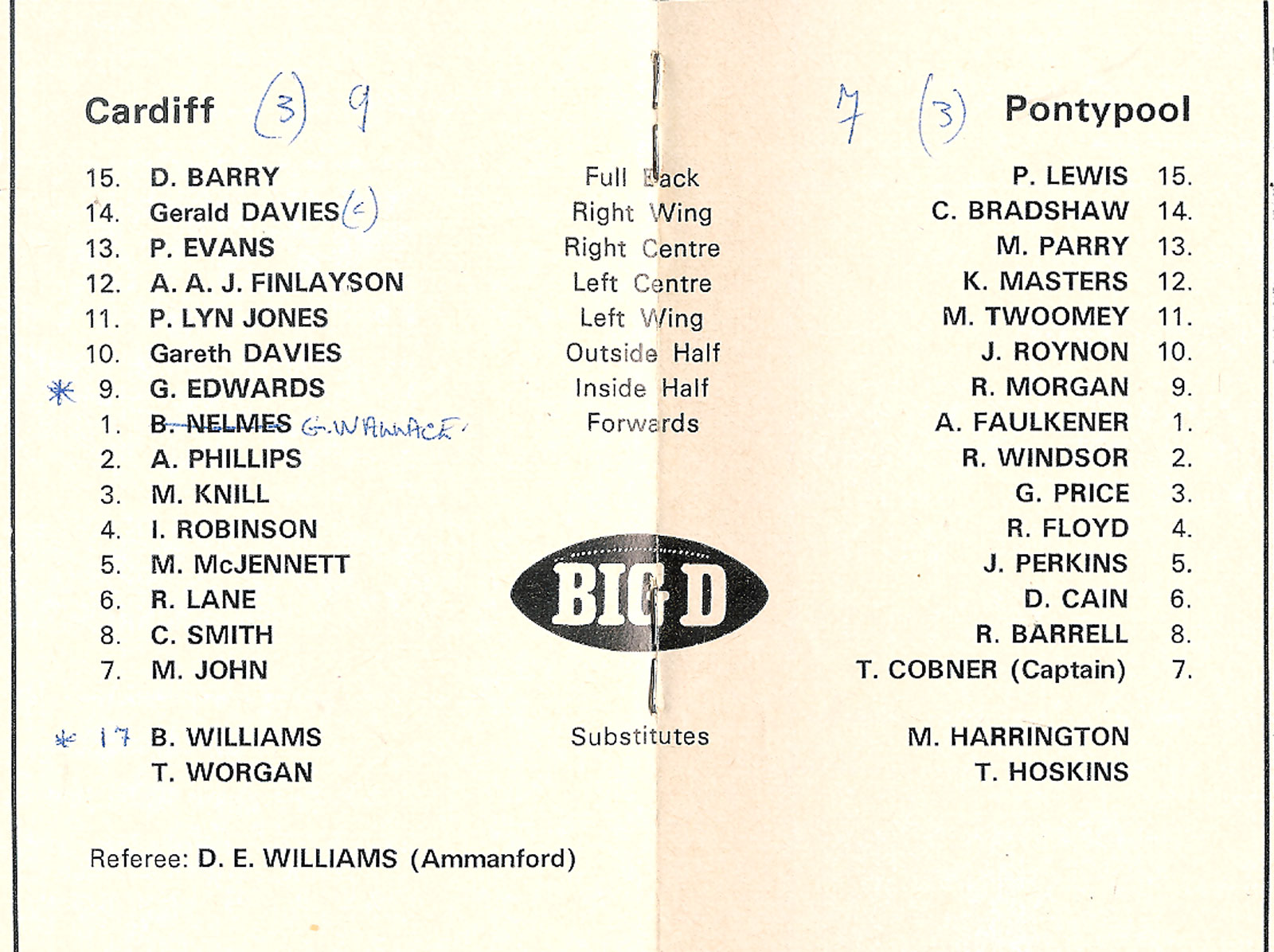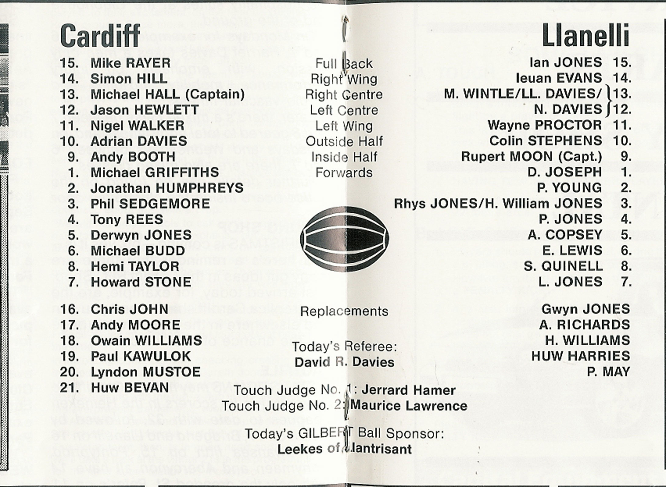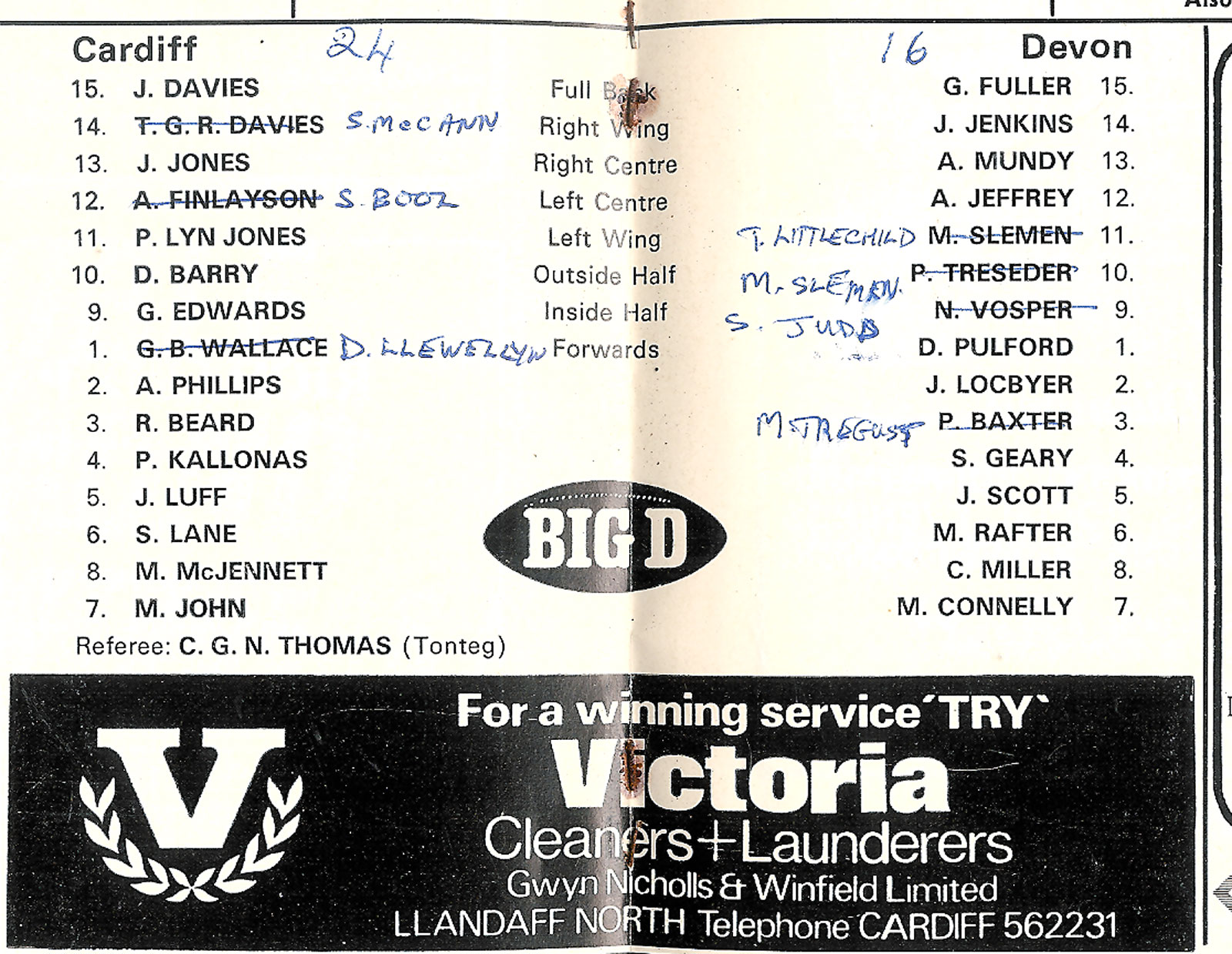 Cardiff v Aberavon | 24 Sep 1977 | Cardiff | 28-13 |