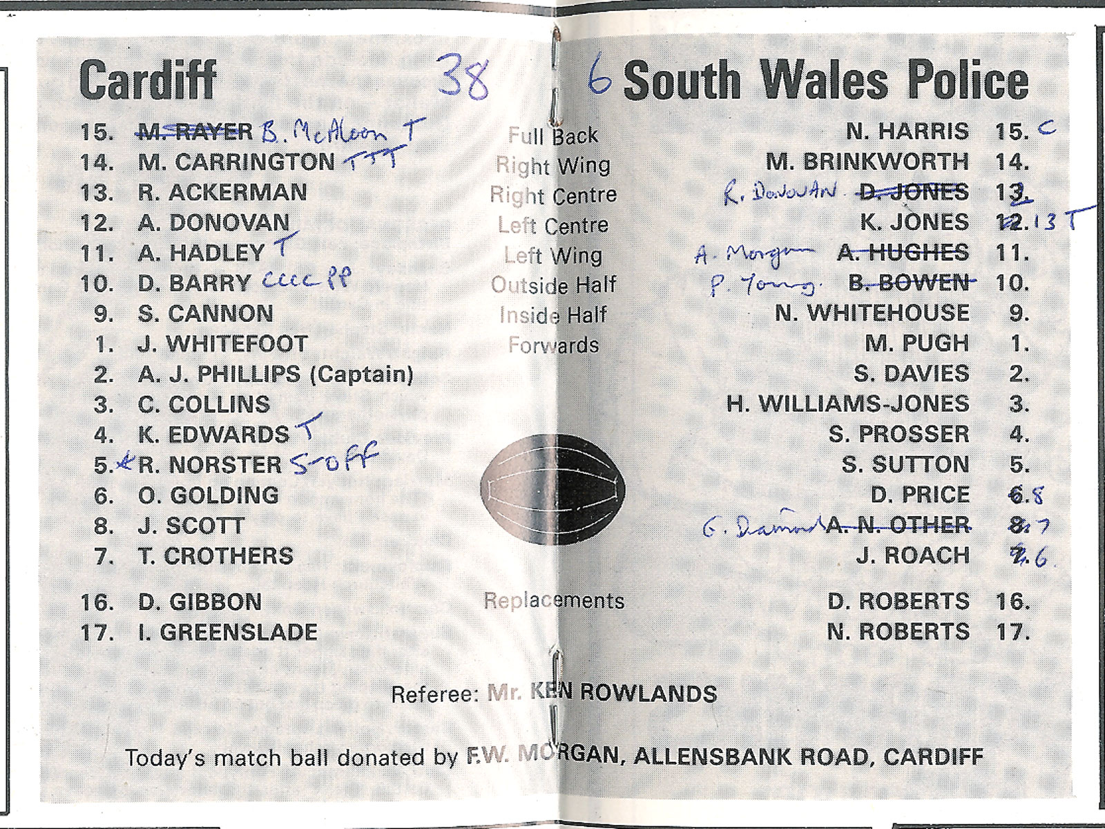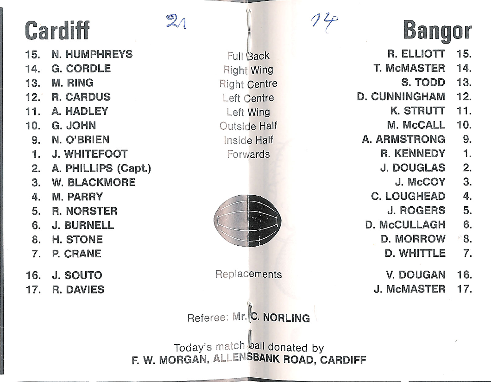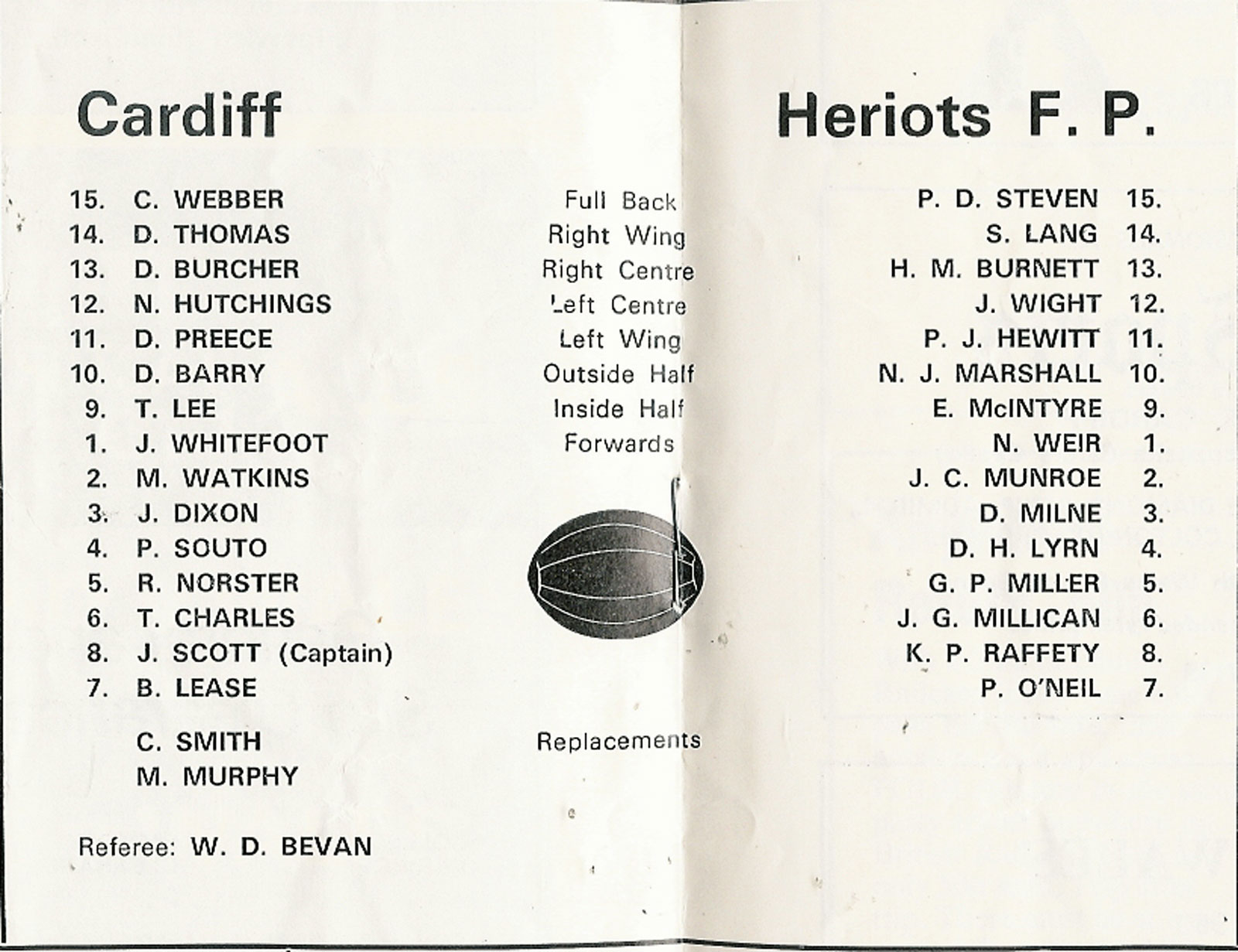 Cardiff v Heriot's FP | 17 Feb 1978 | Cardiff | cancelled | good - slight crease