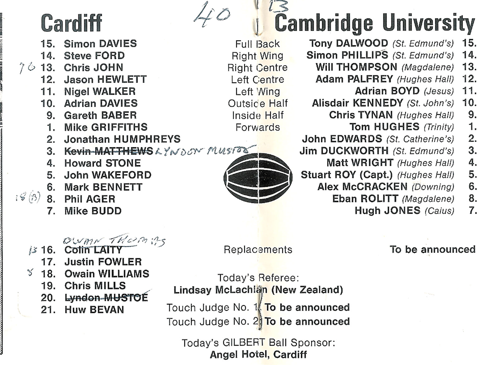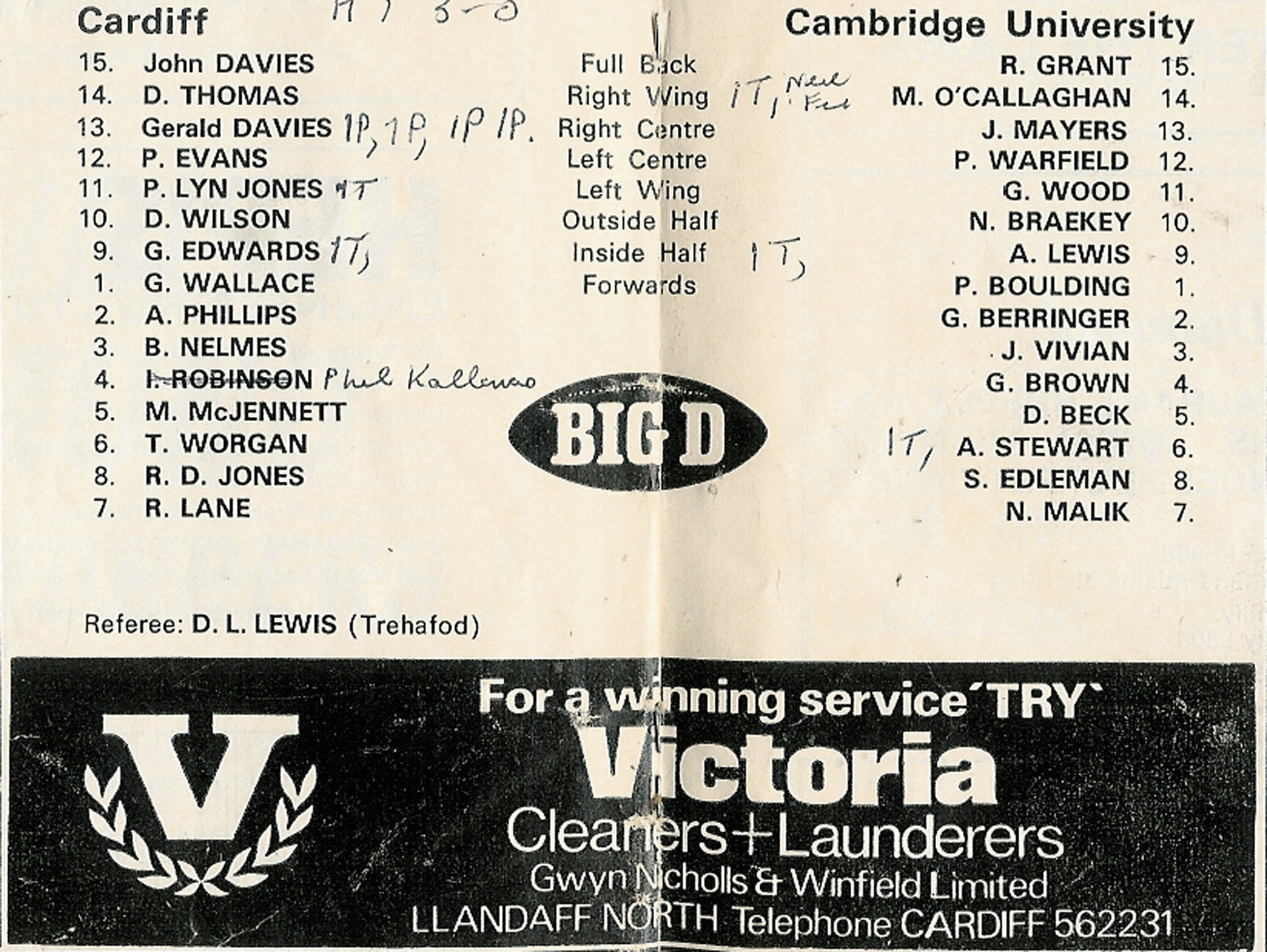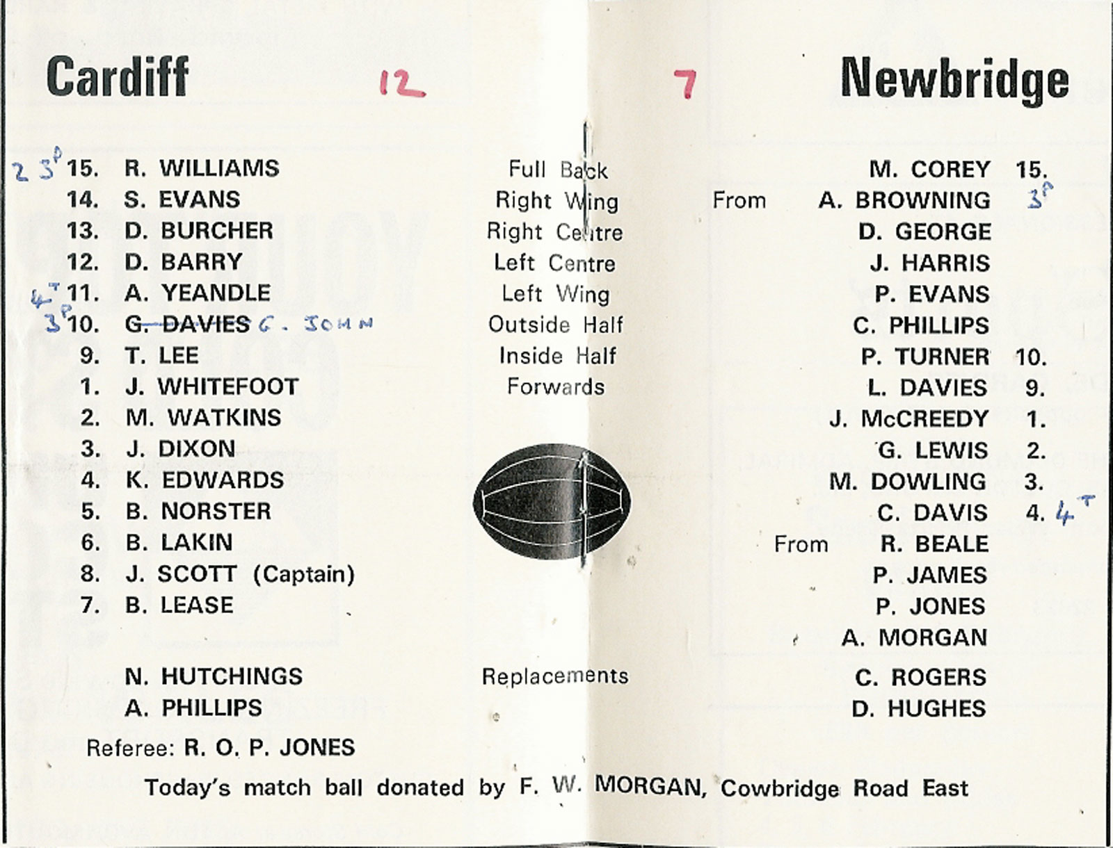 Cardiff v Heriot's FP | 17 Feb 1978 | Cardiff | cancelled | good - slight crease