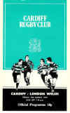 Cardiff v London Welsh | 10 Dec 1977 | Cardiff | 52-17 | fair - creased Ref: RC562-prcb-cdf19771210low** - £2.00 |