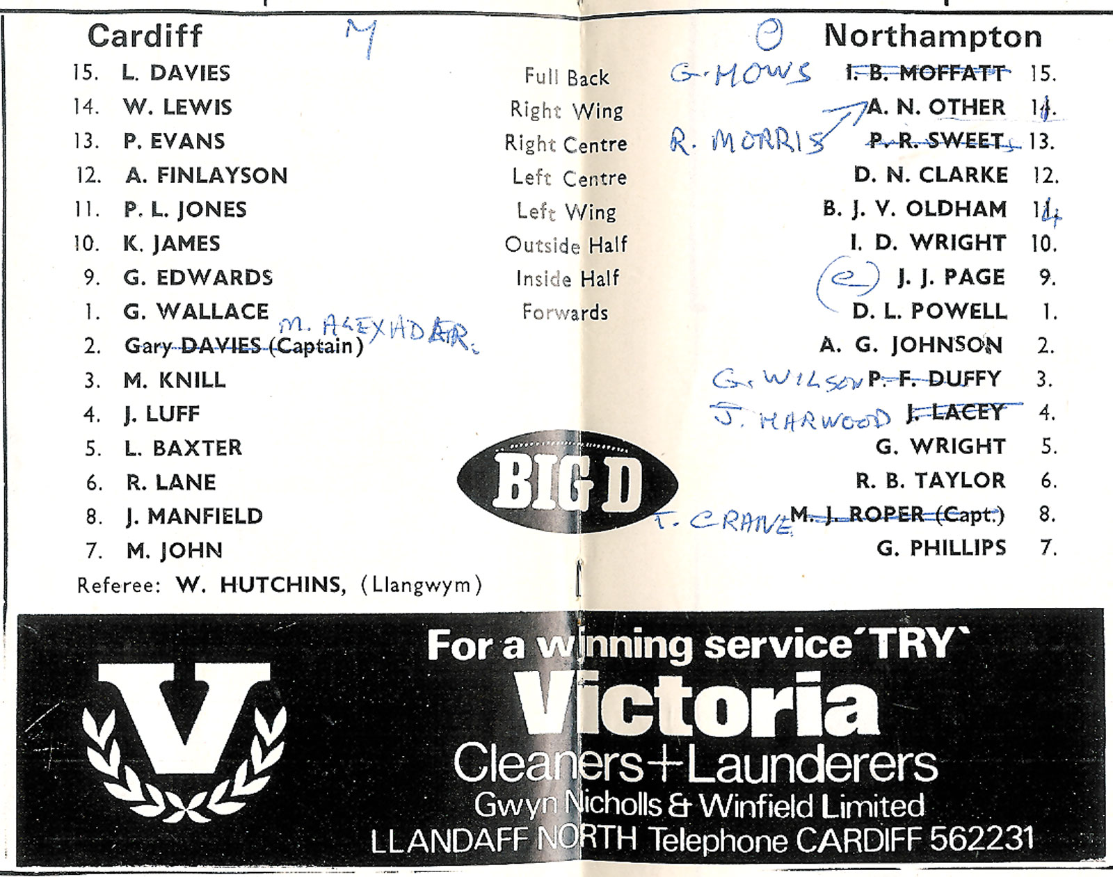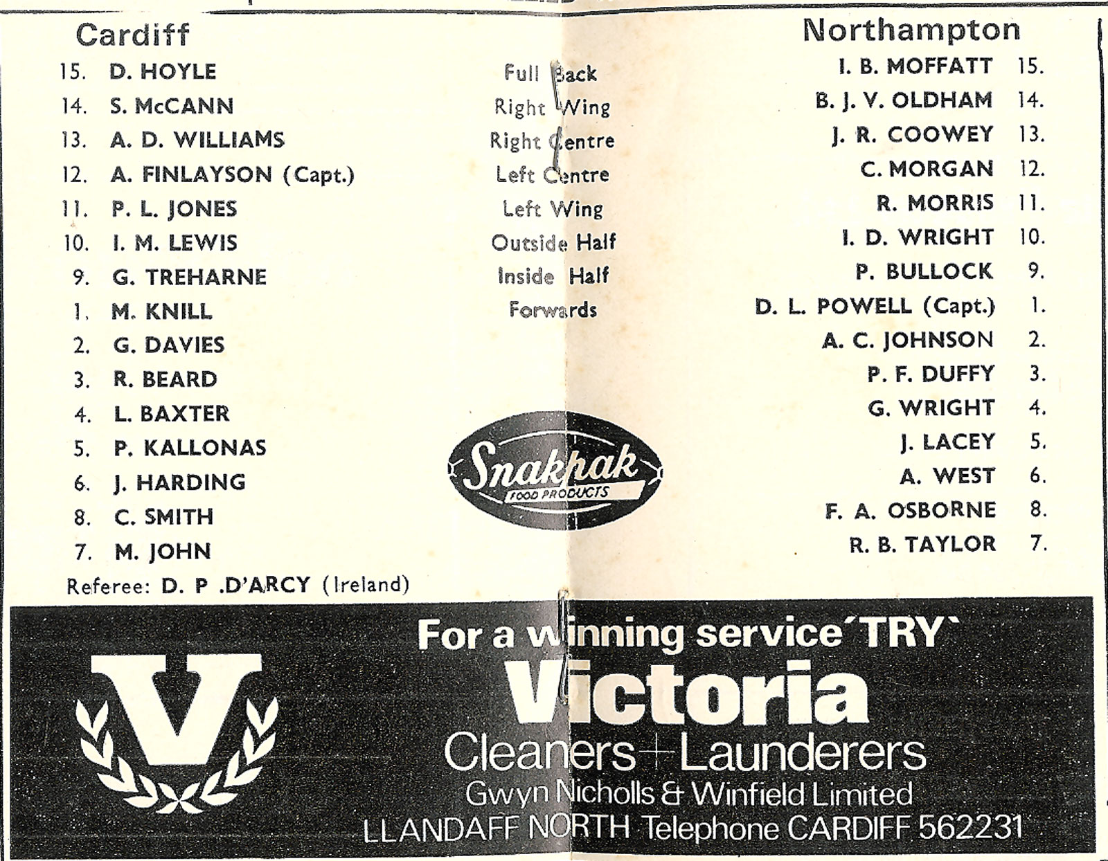 Cardiff v Northampton | 8 Oct 1977 | Cardiff | 50-6 | good - slight crease Ref: PC12-prcb-cdf19771008nor* - £2.00 |
