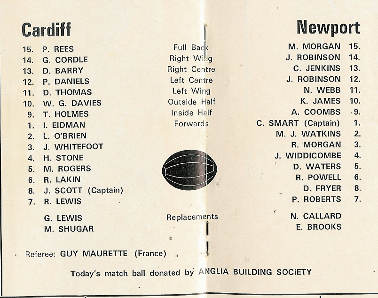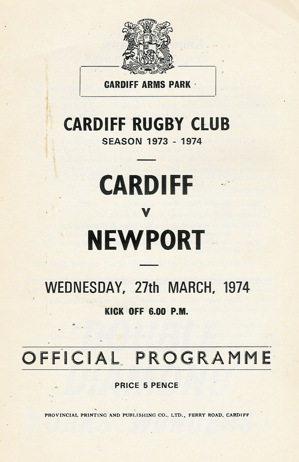 Cardiff v Newport | 5 Apr 1978 | Cardiff | 28-9 | good - slight crease Ref: PC12-prcb-cdf19780405npo* - £2.00 |