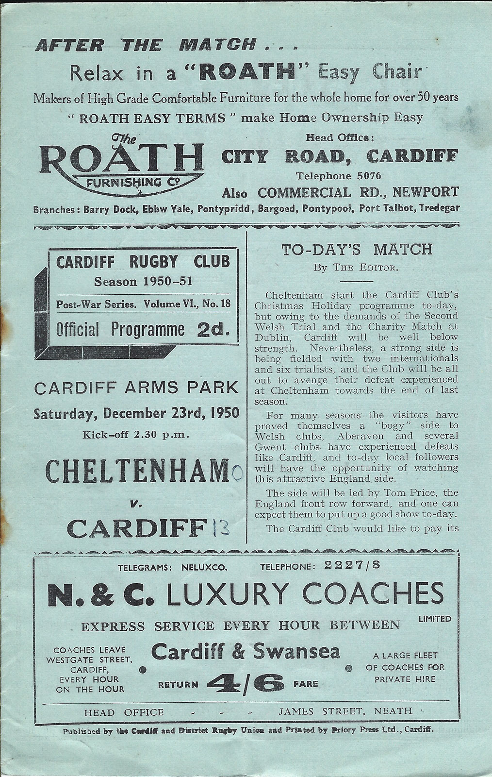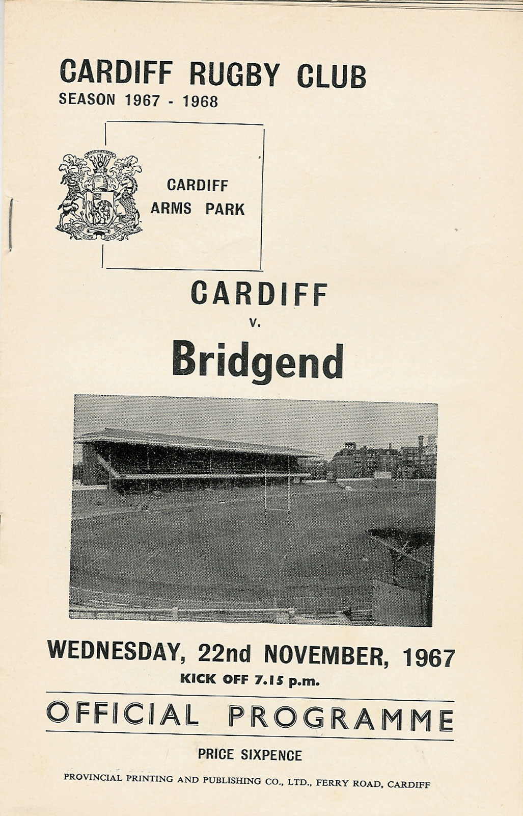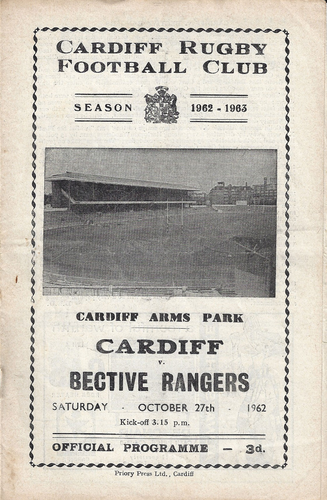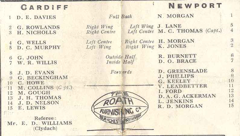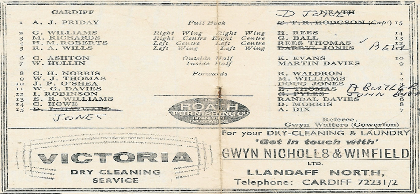 for Cardiff RFC away programmes please visit our other club programme pages......... Aberavon - Bath - Bridgend - Ebbw Vale - English Clubs - Gloucester - Irish Clubs - Irish Provincial - Llanelli & Scarlets - Maesteg - Neath - Newbridge - Newport - Pontypool - Pontypridd - Saracens - Scottish Club - Swansea - Welsh Clubs |