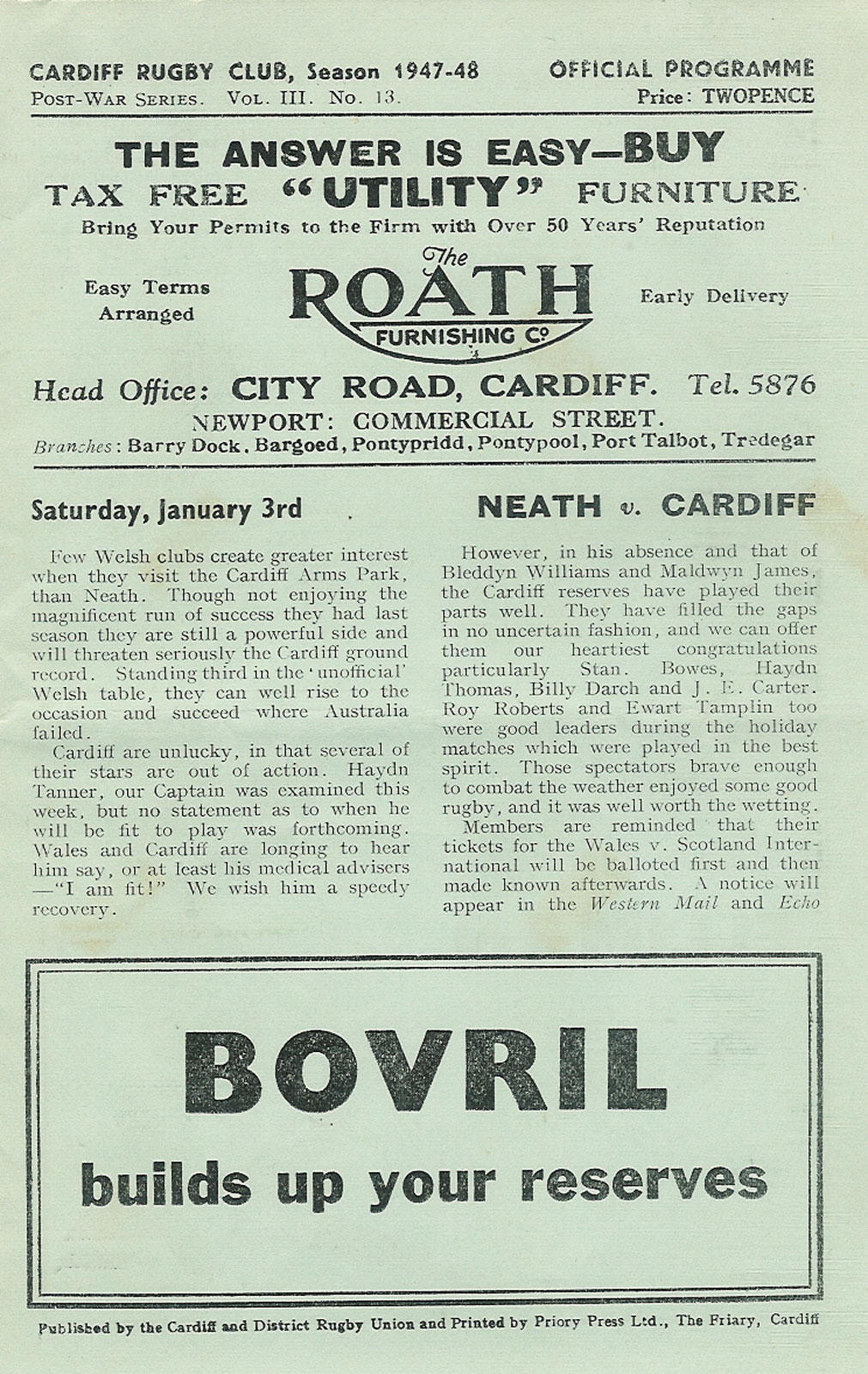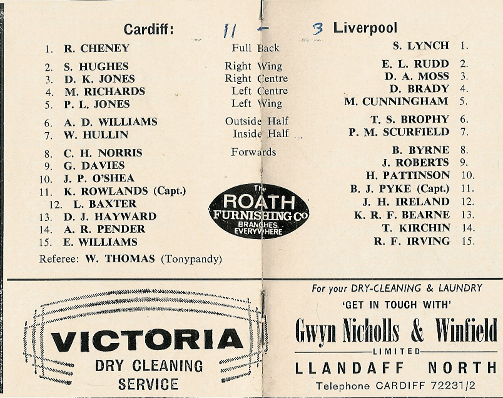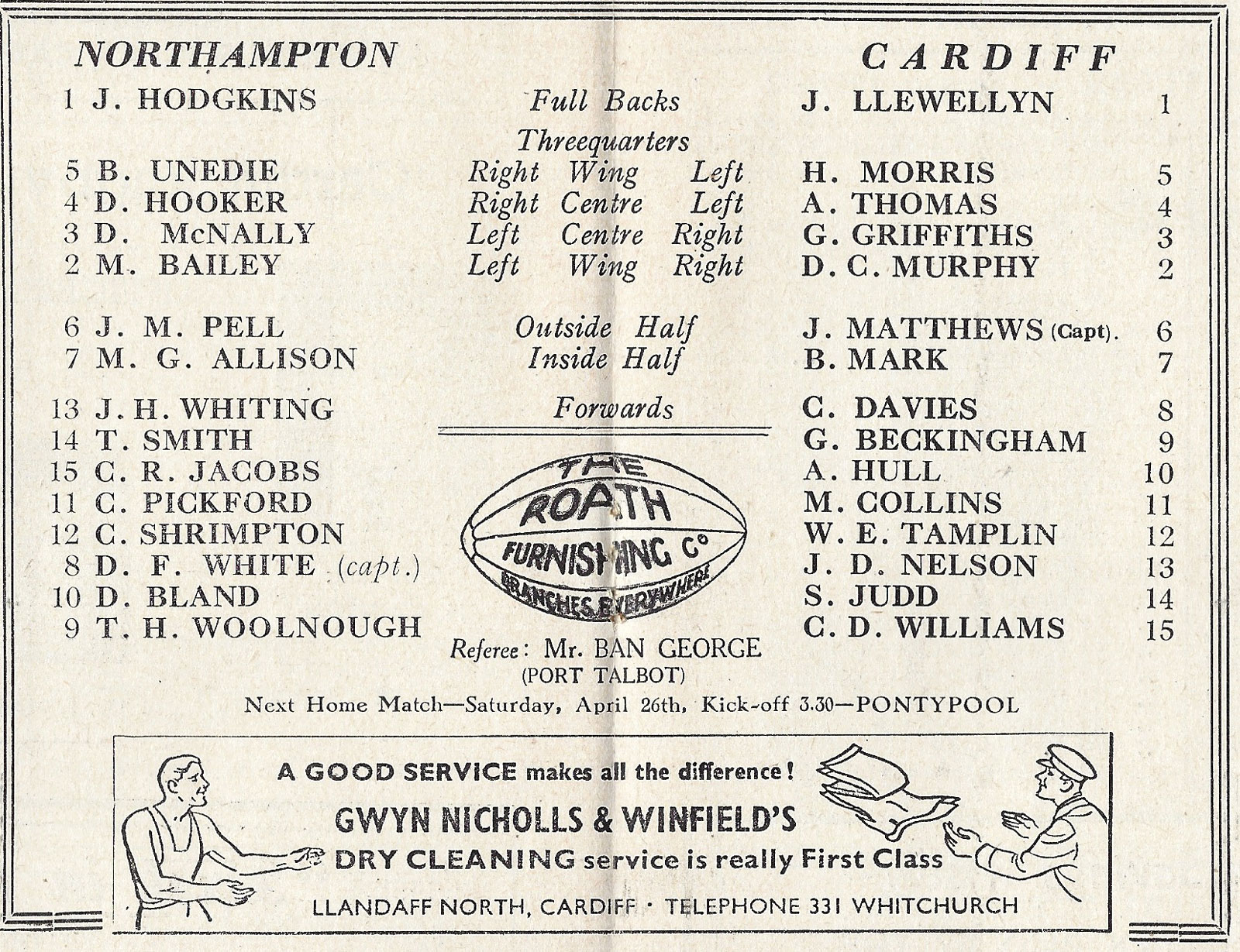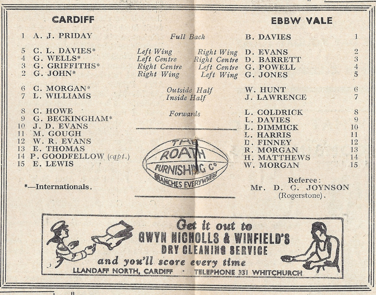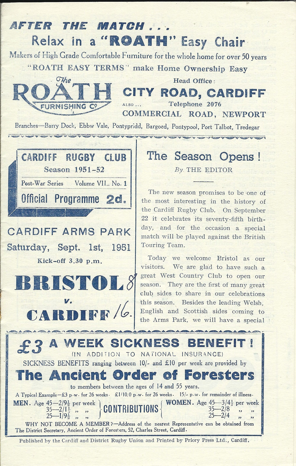 for Cardiff RFC away programmes please visit our other club programme pages......... Aberavon - Bath - Bridgend - Ebbw Vale - English Clubs - Gloucester - Irish Clubs - Irish Provincial - Llanelli & Scarlets - Maesteg - Neath - Newbridge - Newport - Pontypool - Pontypridd - Saracens - Scottish Club - Swansea - Welsh Clubs |