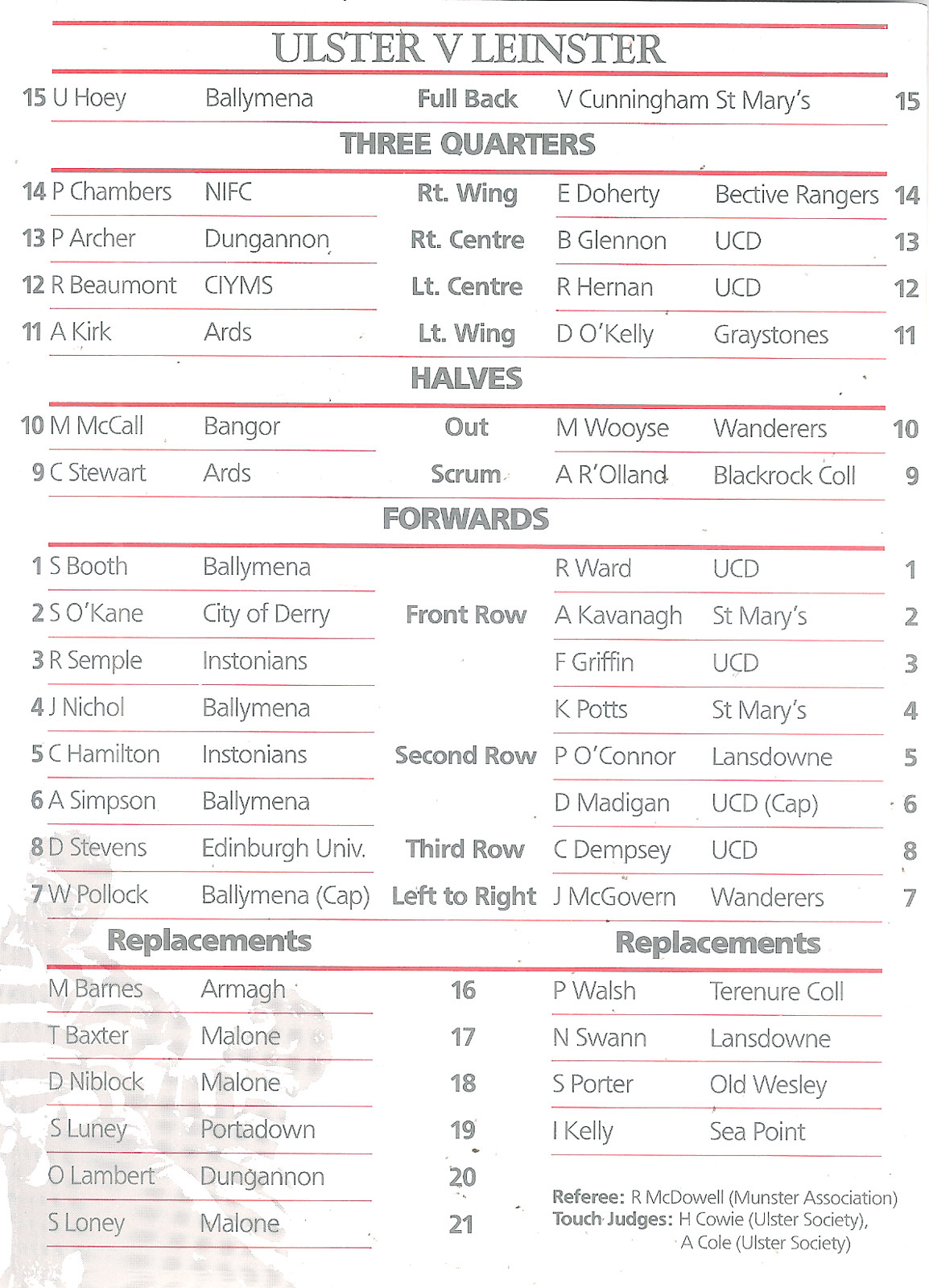 75.jpg (286677 bytes) Ulster Under 20s v Leinster